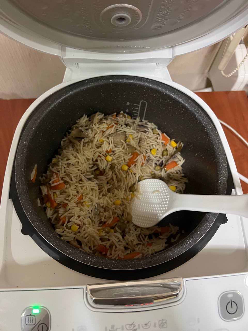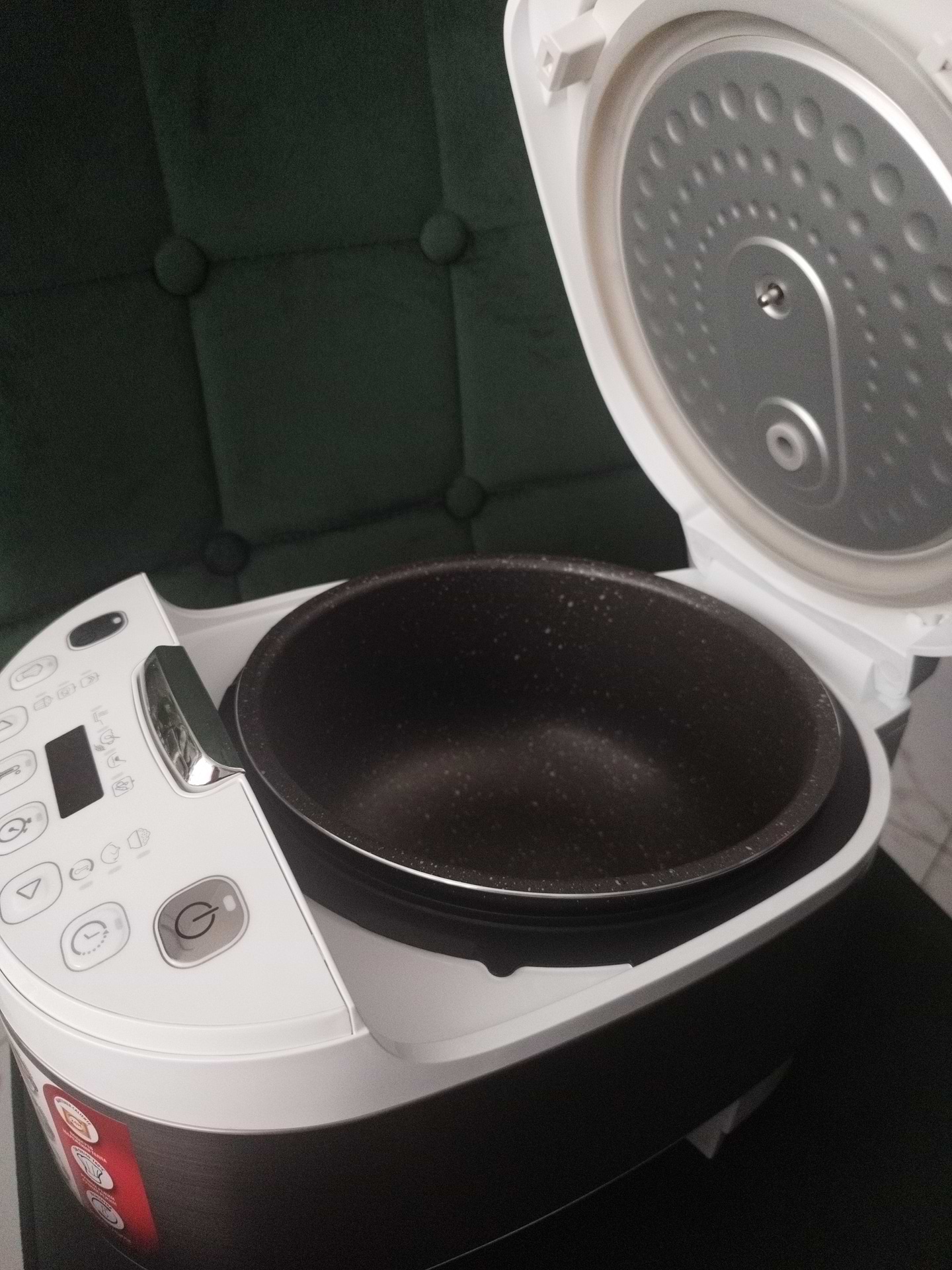 Достойна машина, компактна, + що мала потужність 750 в, добре, що є функція жарки (омлет, яйця гриби жарить на відмінно), дуже виручає. Плов взагалі супер, і підсмажити, і зготувати, інше, мабуть, як в більшості. Досить якісний пластик., але ну дуже компактна!