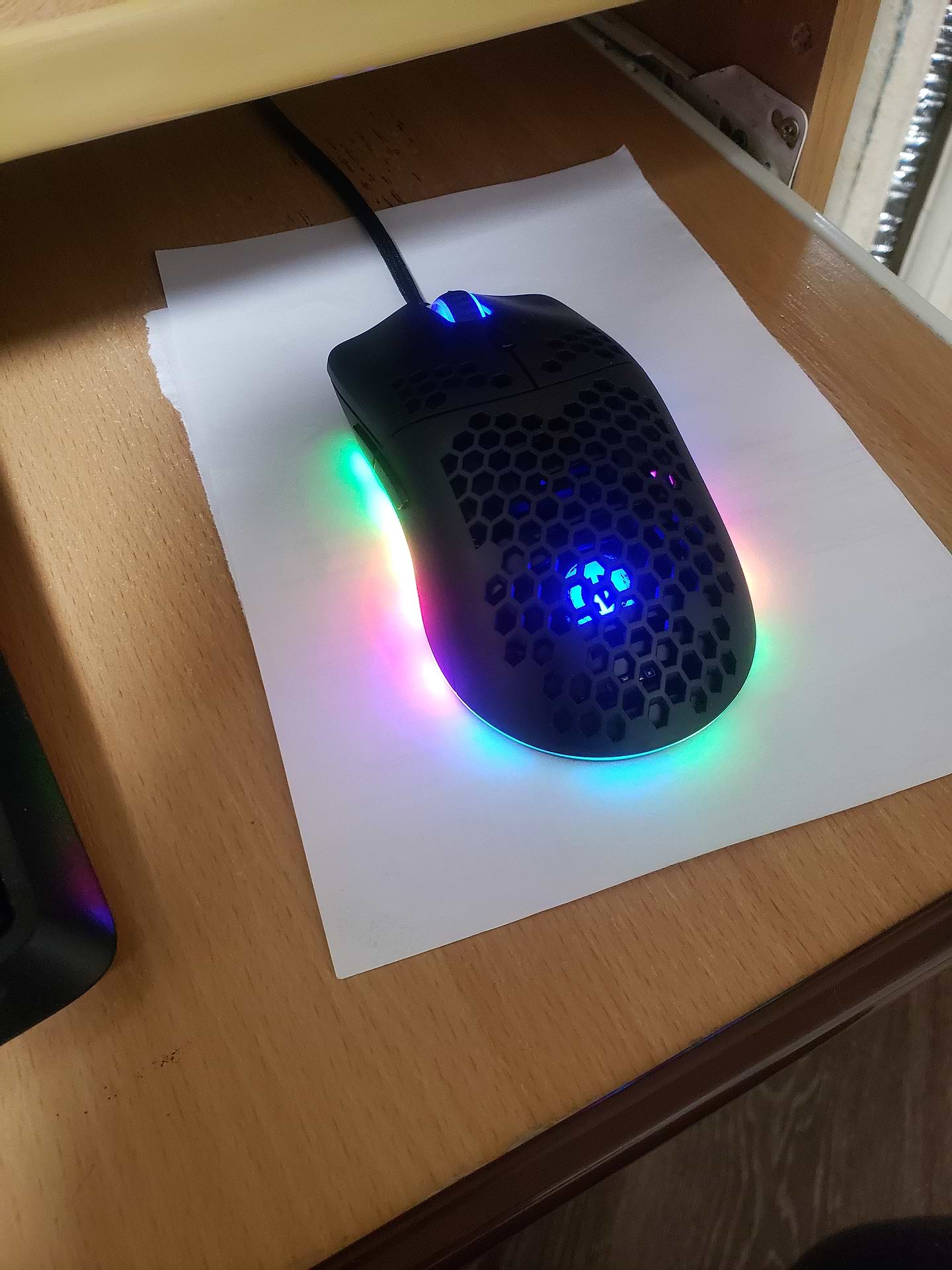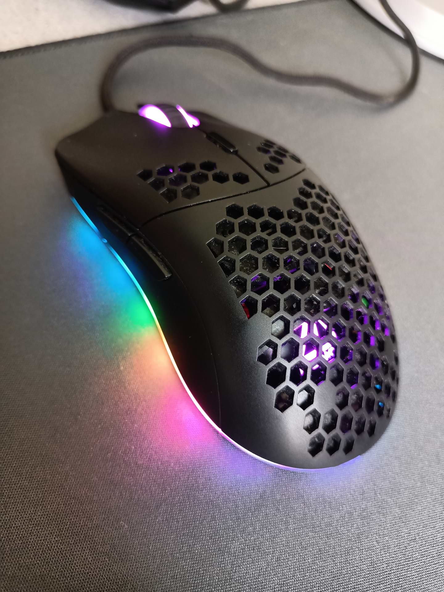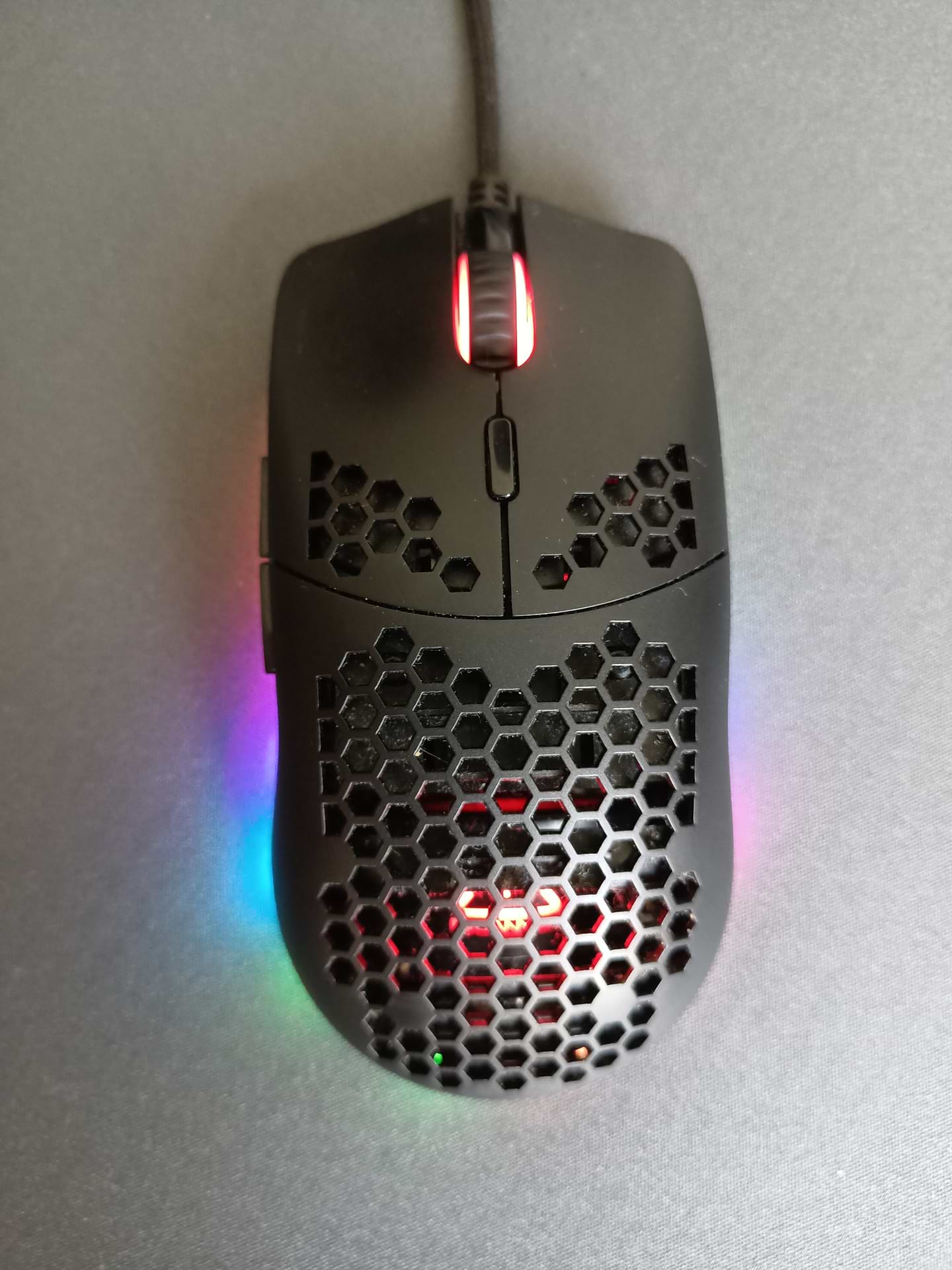 Мишка норм, в руці тримати приємно. Сенсор намагався зірвати не зміг. Підсвітка знизу мишки ніяк не зв'язана з підсвіткою всередині. Без програми задня бокова кнопка не працює тому без програми ніяк. В іграх не погано
