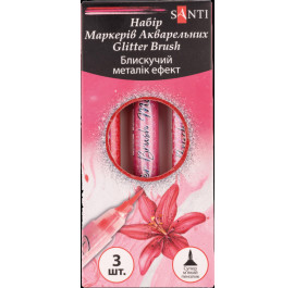 Набор маркеров Santi акварельные Glitter Brush оттенки красного 3 шт. (390768)