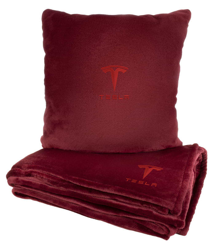 Набор плед + подушка в авто EVAtech из махры S для Tesla красные (MBLMPSSRV041)