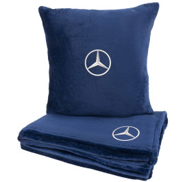 Набор плед + подушка в авто EVAtech S для Mercedes-Benz синие MBLMPSSLV016