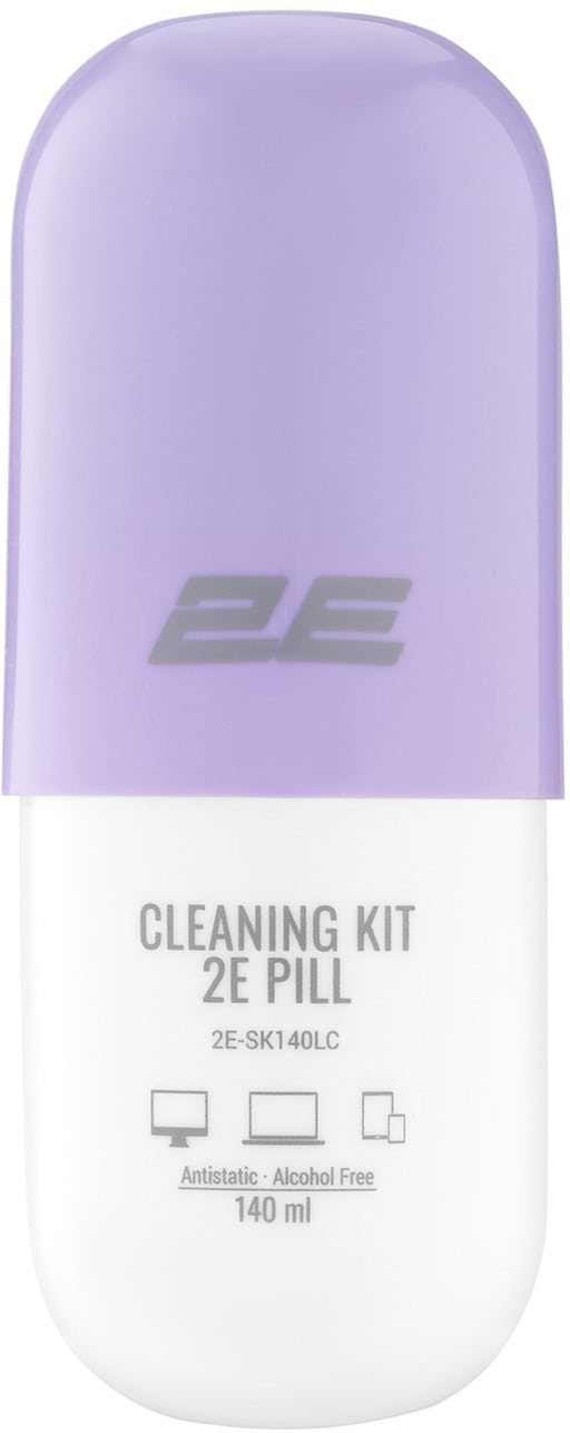 Набор для чистки оргтехники 2E PILL (жидкость 140 мл + салфетка 20 см) бело-сиреневый (2E-SK140LC)