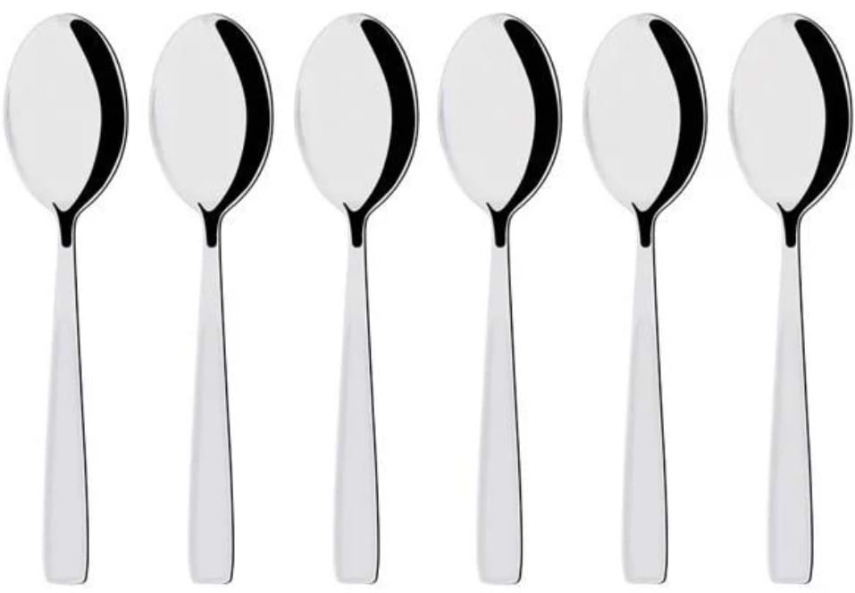 Классные классические столовые ложки. В наборе идут шесть штук, которых достаточно для домашнего обихода. Ложки сделаны их прочного металла, не ржавеют, не деформируются. Мыть их можно как руками, так и посудомоечной машине. Пятен после мойки не остается. Мне очень они понравились и следующая моя покупка - это такие же по дизайну вилочки и чайные ложки.