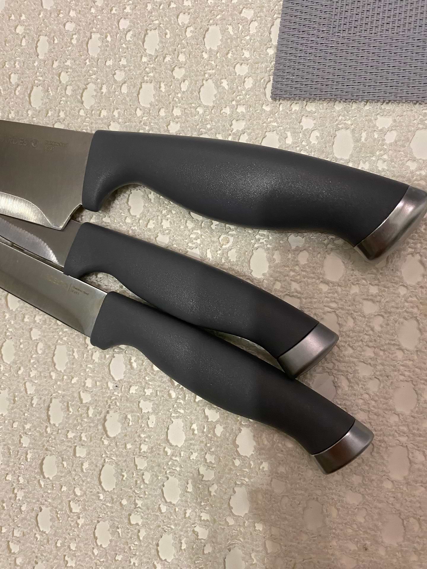 чудові ножі. якість перевершує ціну. міцні леза. ручка зручна і не скользить. рекомендую