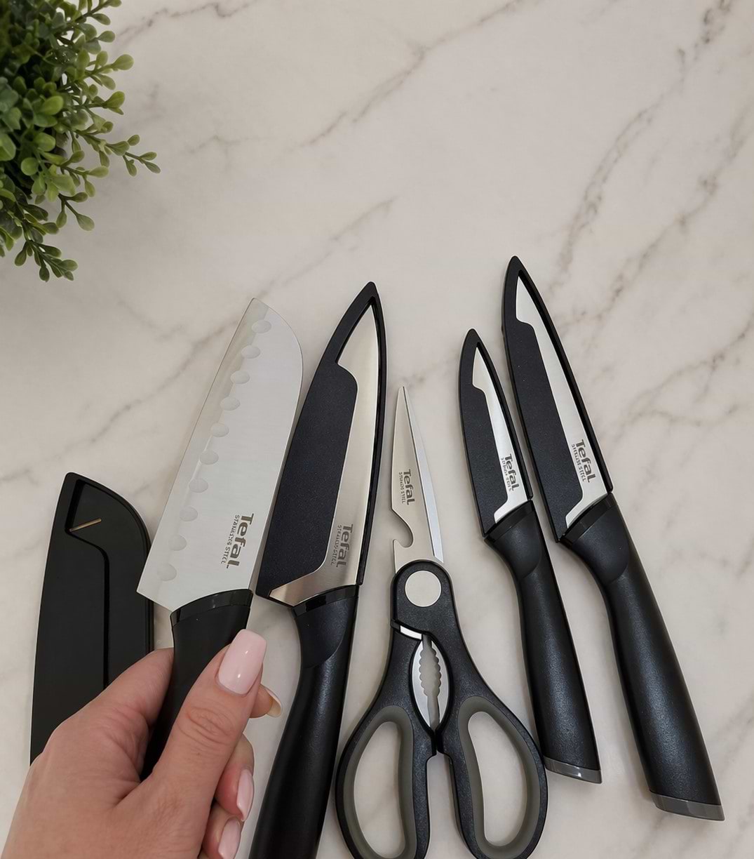 Набір мені подобається своєю універсальністю, підійде для роботи з будь-якими продуктами. Зручні в зберіганні, бо кожен ніж має спеціальний чохол на лезо. Якість матеріалів порадувала, ручки міцні, а нержавіюча сталь не боїться пошкоджень і заточена мов лезо. Наразі жодних проблем, набір супер.