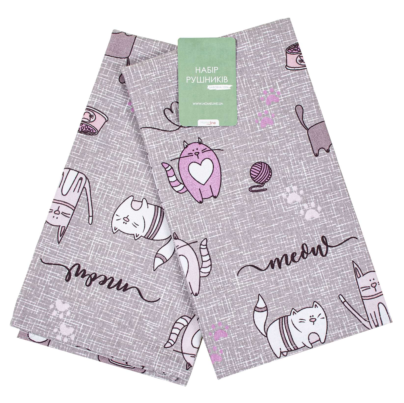 Все о Набор полотенец Home Line Полупанама Кот на кухне серо-сиреневый 40х60 2 шт. (175291)
