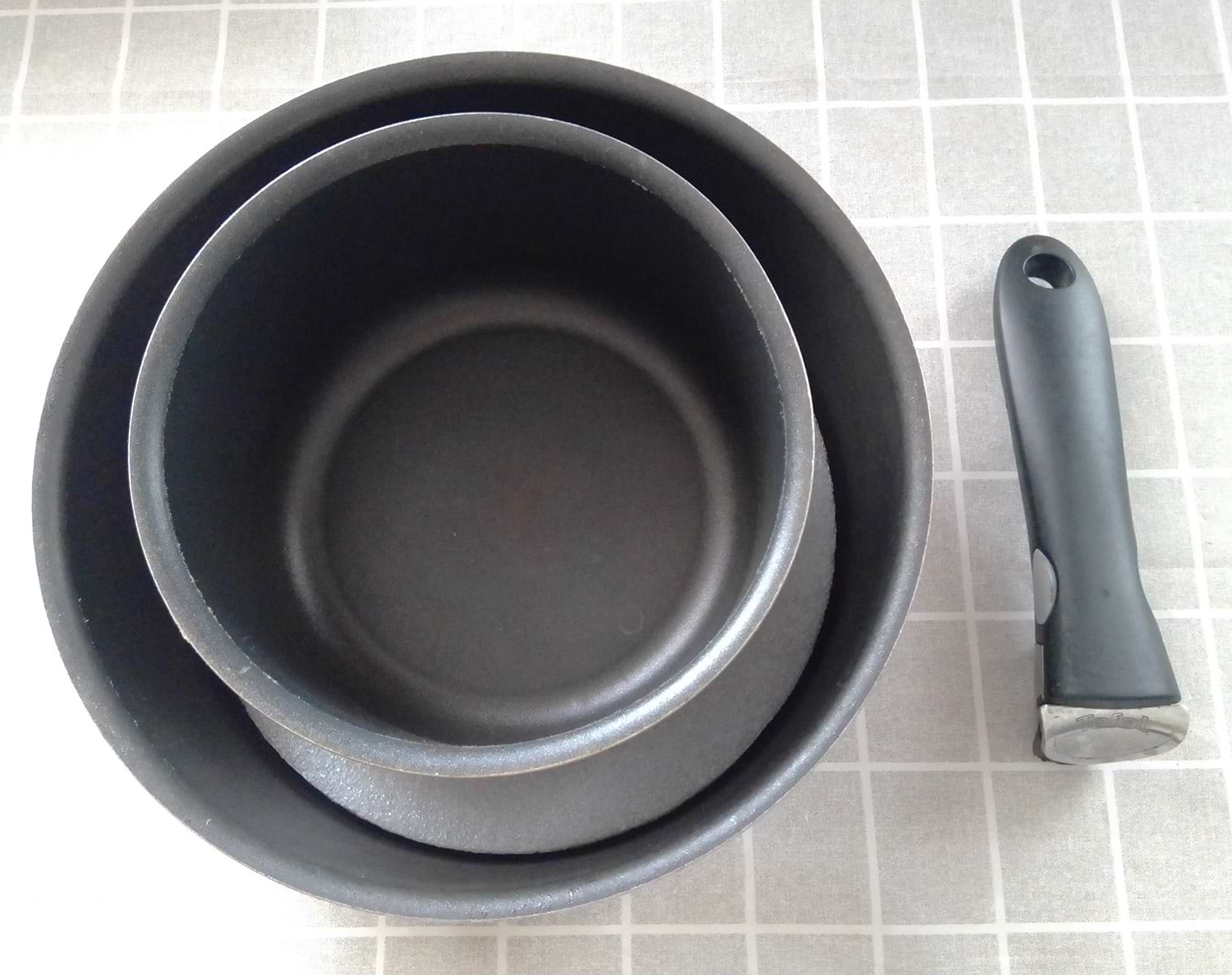 Гарний набір. Куплявся замість старого Tefal (2 ємності + ручка), який на останньому фото. Старий послугував десь років 7 постійного використання. В новому наборі ємності менші по діаметру, але їх 3.