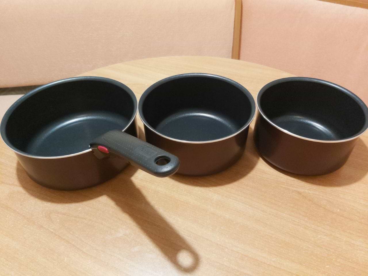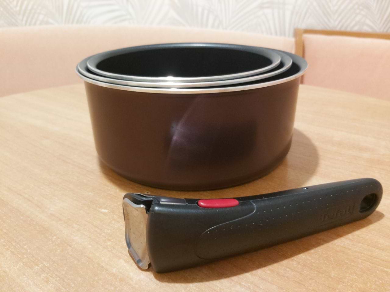 Давно мріяла про такий набір, бо в мене маленька кухня і обмаль місця, і нарешті він мій! Якість товару відмінна, колір дуже елегантний трохи темніший, ніж на рекламі. Знімна ручка дуже зручна. Я повністю задоволена. Тепер вирішила розлучитися із старими пательнями і докупити нові також із знімною ручкою, бо це так зручно !