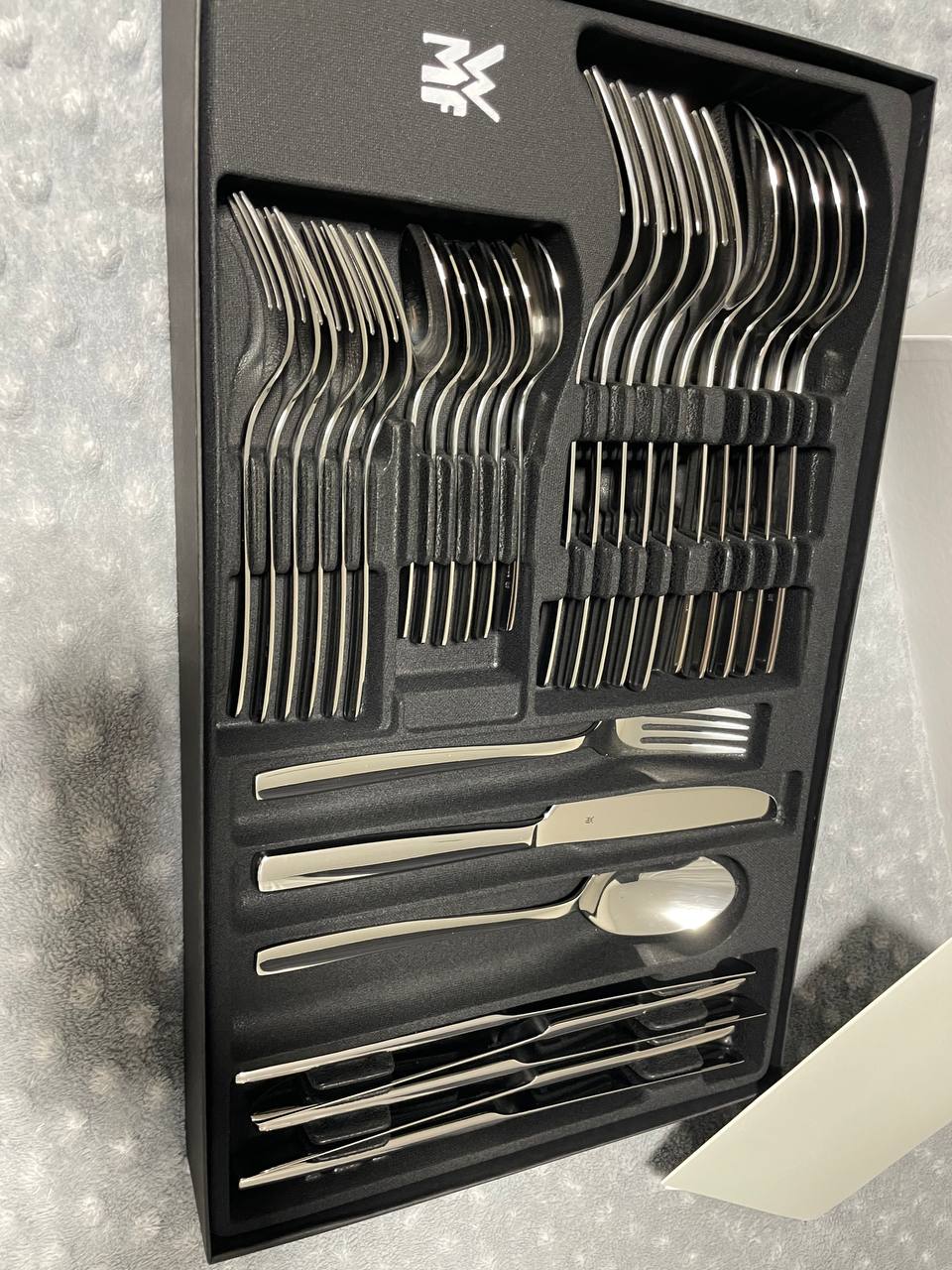Отримала цей набір у подарунок і тепер розумію, чому всі хвалять WMF. Прибори виглядають дорого, але при цьому прості й елегантні. Дуже приємно тримати в руках — усе збалансовано. Після кількох місяців користування блиск не зник, виглядають як нові. Такий набір — ідеальний варіант на подарунок чи для власного дому.