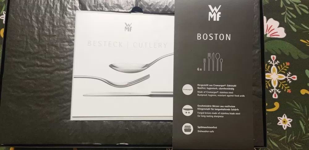 Чесно кажучи, раніше ніколи не чула про бренд WMF, але коли побачила цей набір, вирішила купити одразу. І не пошкодувала ні на хвилину! Прибори виглядають дуже стильно, приємно тримати в руках, а якість відчувається з першого використання. Весь комплект підійшов ідеально для нашої родини, ще й під час святкового застілля виглядає бездоганно. Тепер розумію, чому цей бренд так хвалять — набір справді вартий уваги.