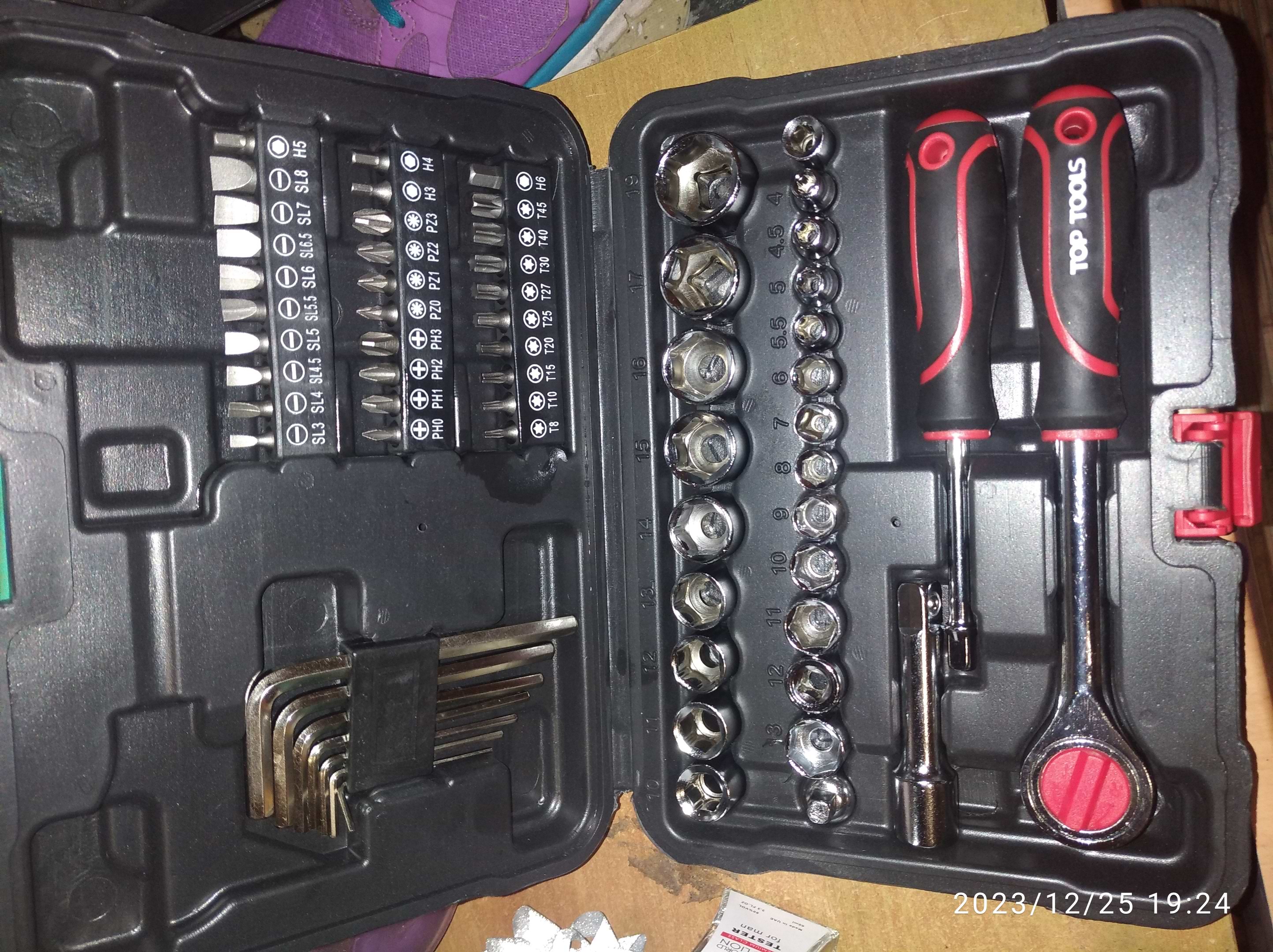 Купили такой наборчик торцевых ключей папе, т.к. он постоянно капается в гараже и что-то ремонтирует. Подбирали не слишком дорогой, но при этом качественный вариант и остановились на этом. Папа остался очень доволен, т.к. здесь действительно много насадок, он ещё даже половиной не пользовался. Сам кейс для переноски крепкий, сделан прочно. Рекомендую!