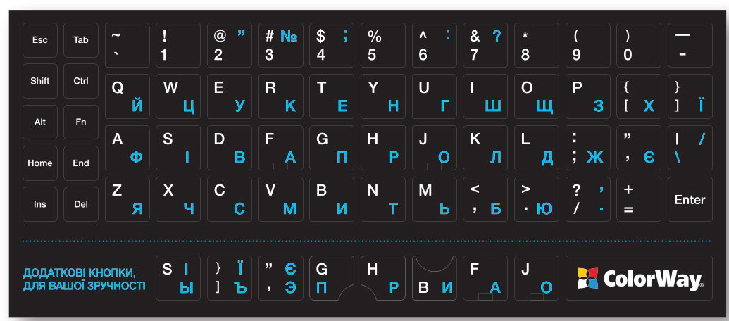 Наклейки на клавиатуру Colorway White/Blue (CW-BWBL)
