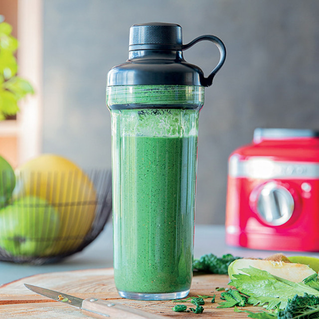Хотите взять смузи в дорогу? Теперь его можно сделать еще быстрее: просто присоедините насадку-стакан к основанию вашего блендера KitchenAid (модели К400, К150 и К130), смешайте ингредиенты и закройте стакан крышкой – никаких переливаний и грязной посуды!