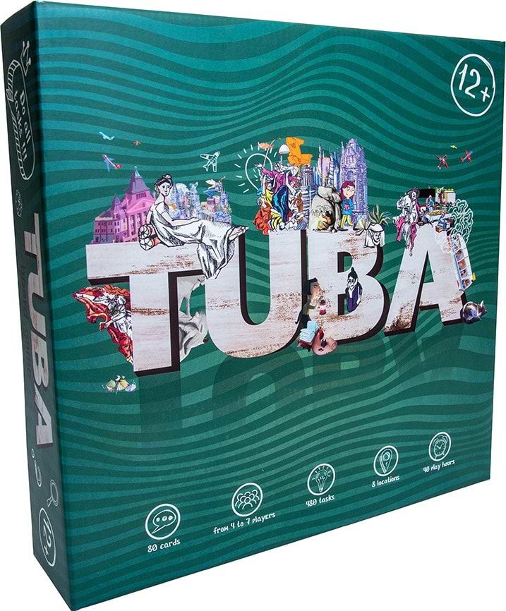 ТУБА - потрясающе стильная настольная игра, где совсем иначе действует известная каждому механика объясни-покажи. Специально созданные игровые поля не оставят никого равнодушным. Каждая картина — целый мир, который можно разглядывать часами (а заданий хватит примерно на трое суток непрерывной игры). Увлекательная игра «Tuba» сможет заинтересовать не только детей, но и взрослых, даст возможность увлекательно провести время всей семье, при этом развить внимательность, командный дух и развлечься. Представляет собой разновидность известной игры “крокодил”, в которой необходимо угадывать предмет или действие загаданное ведущим. Веселый смех при этом гарантирован! Главный предмет игры – деревянная туба, которая устанавливается на игровом столе. В начале, все игроки получают игровые поля с каким-либо сюжетом, по выбору один из игроков становится сдающим, выбирает карточки с заданиями и в соответствии с очками, выпавшими на кубике одним из способов – словами, рисунками, жестами описывает предмет или фигуру на игровом поле. Игрок первым схвативший тубу получает возможность ответить на вопрос, при неправильном ответе он должен вернуть тубу на место и передать ход другому игроку. На каждом игровом поле около 60 заданий, каждый игрок, давший правильный ответ передвигает свою фишку на беговой дорожке – победит тот, кто первым придет к финишу. Правила просты, но игра увлечет участников с первой партии. Для продолжения игры можно менять игровые поля.