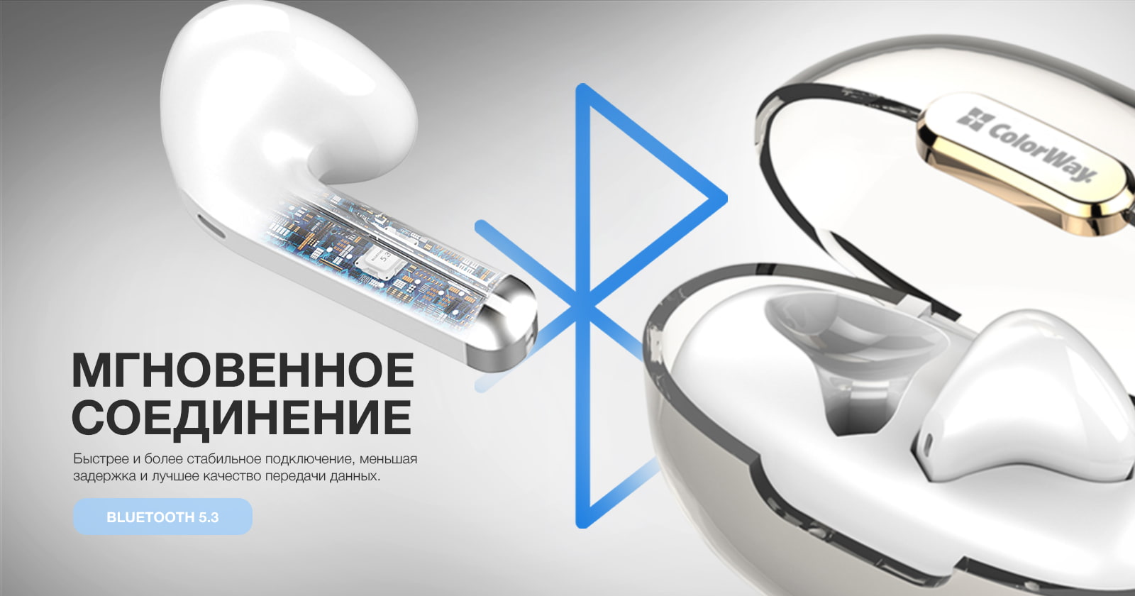 Наушники подключаются к смартфону с помощью передовой технологии Bluetooth 5.3, которая гарантирует быстрое автоматическое подключение, высокую стабильность и качественное звучание.
