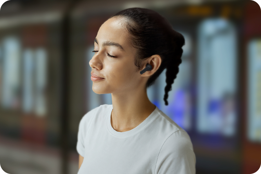Пусть ваша музыка остается на первом плане. Функция активного шумоподавления работает так, что посторонние звуки отходят на второй план. Это позволяет по-настоящему погрузиться в свой плейлист даже в самых шумных местах: в метро, на дороге или в кафе.