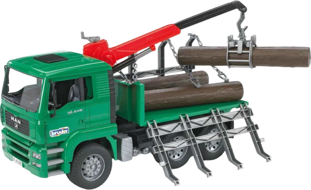 Наземная строительная техника BRUDER Грузовик MAN, перевозчик брёвен с краном-погрузчиком, М1:16 (02769)