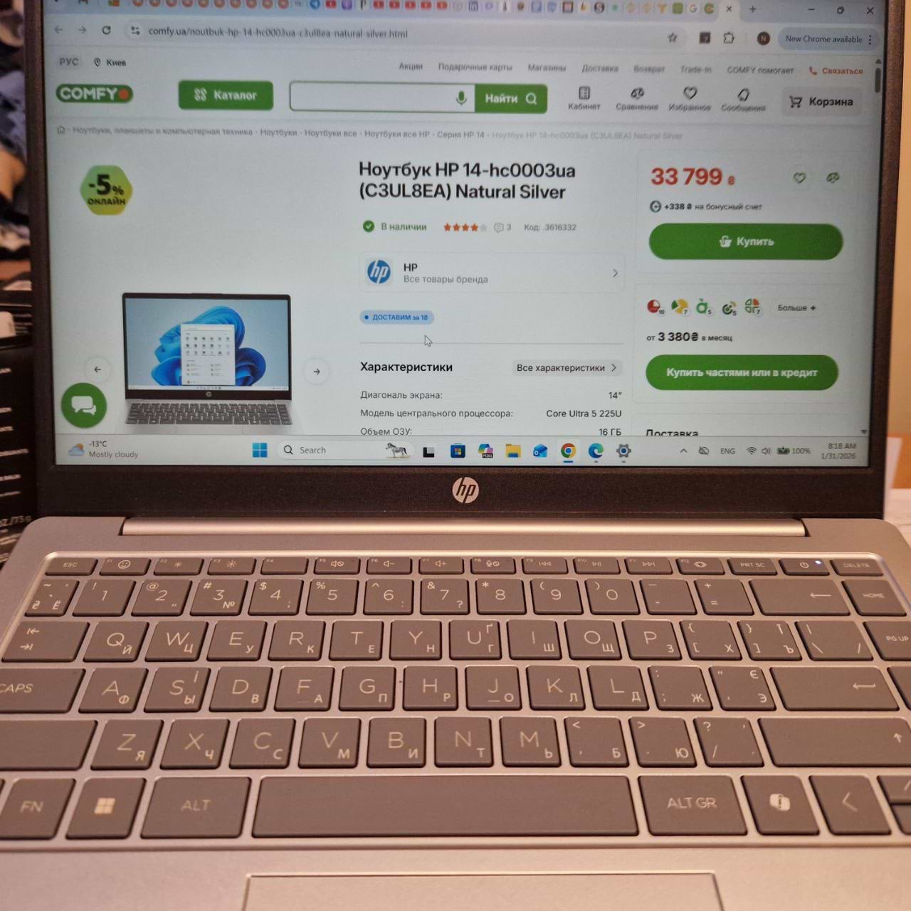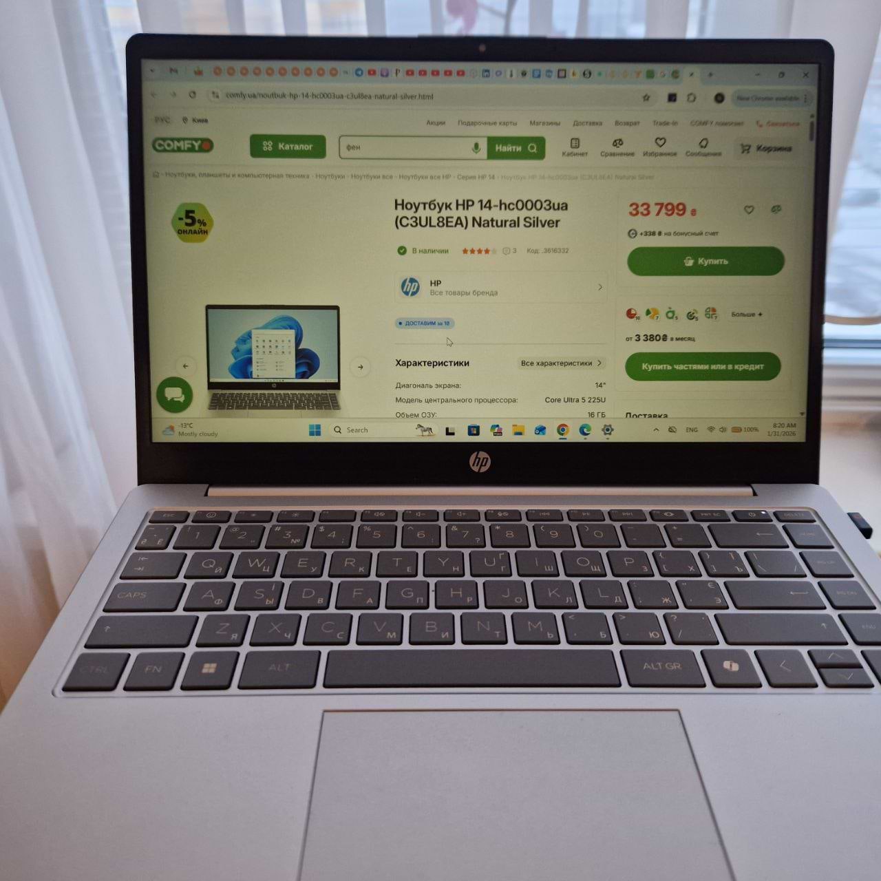 Ноутбук **HP 14-hc0003ua (C3UL8EA)** — це легка й зручна у використанні модель із сучасним процесором 2025 року. Він добре підійде для щоденних поїздок чи роботи поза домом, адже не обтяжує та має збалансовану вартість відносно продуктивності. Пристрій впевнено справляється з офісними завданнями, вебсерфінгом і мультимедіа, забезпечуючи стабільну роботу без перебоїв. Особливо сподобався його мінімалістичний дизайн і відсутність зайвих деталей. Єдиний момент — клавіатура не має кнопки підсвітки, що варто врахувати тим, хто часто працює у темряві.