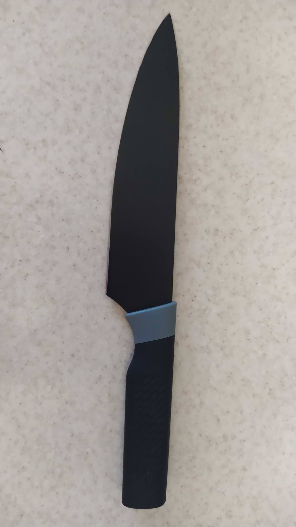 Коли обирала ніж дуже сподобався дизайн, раніше не бачила повністю чорних! Вирішила замовити, приїхав швидко. Він виготовлений з міцної нержавіючої сталі, різала ним навіть не повністю розморожене м'ясо, але чудово показав себе. Лезо досить велике, тому спочатку було незвично, але з часом вже не звертаєш уваги.