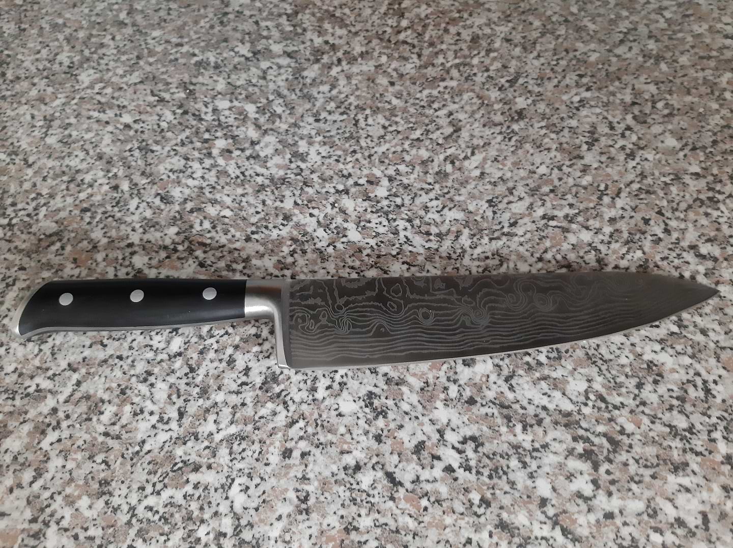 шикарний ніж: гострий, важкий, збалансований, зручне руків'я, здається дещо завеликим для жіночої руки, мабуть треба просто звикнути)