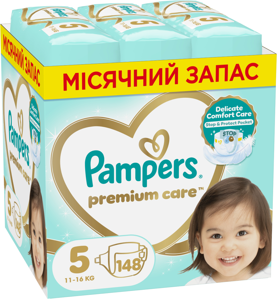 Характеристики Pampers Premium Care Размер 5 (11-16 кг), 148 шт. (80789192)