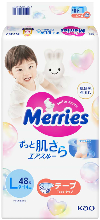 Одноразовые подгузники MERRIES Размер L (9-14 кг.), 48 шт. (439705)