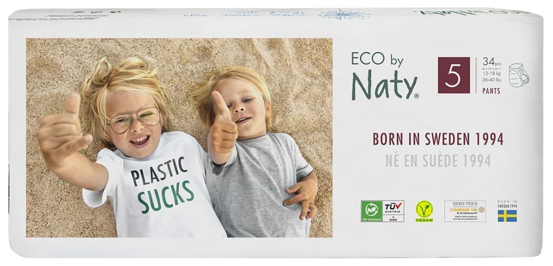 Все о Одноразовые подгузники-трусики Eco By Naty Органические Размер 5 (12-18 кг) 34 шт. (177696)