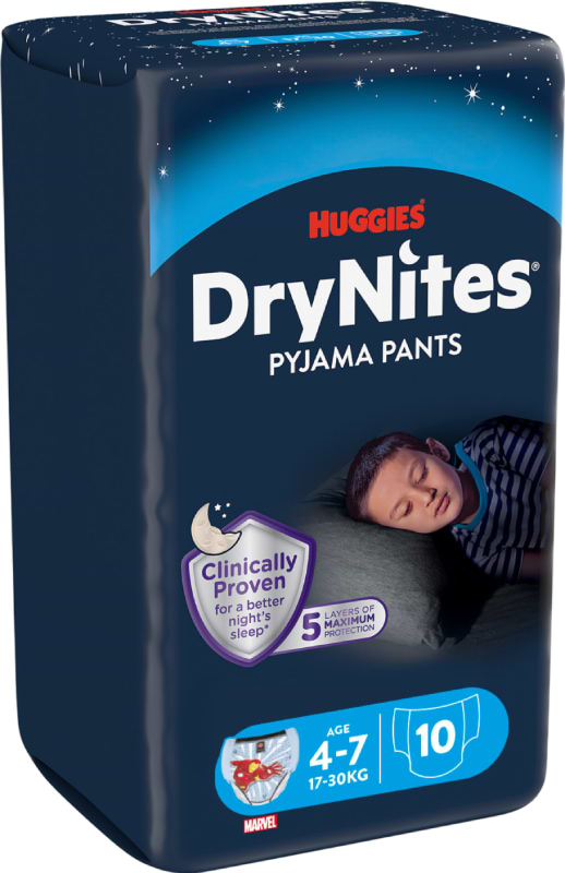 Одноразовые подгузники-трусики Huggies DryNites мальчик 4-7 лет (17-30 кг), 10 шт. (5029053527574)