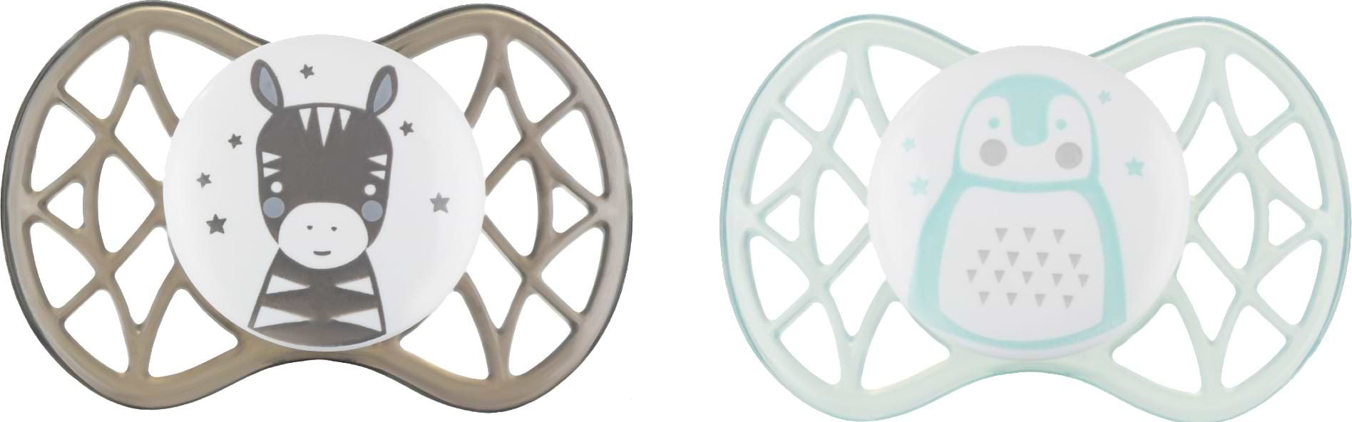 Ортодонтическая пустышка Nuvita Air55 Explorer 0m+(зебра, пингвин) 2 шт. (NV7066N)