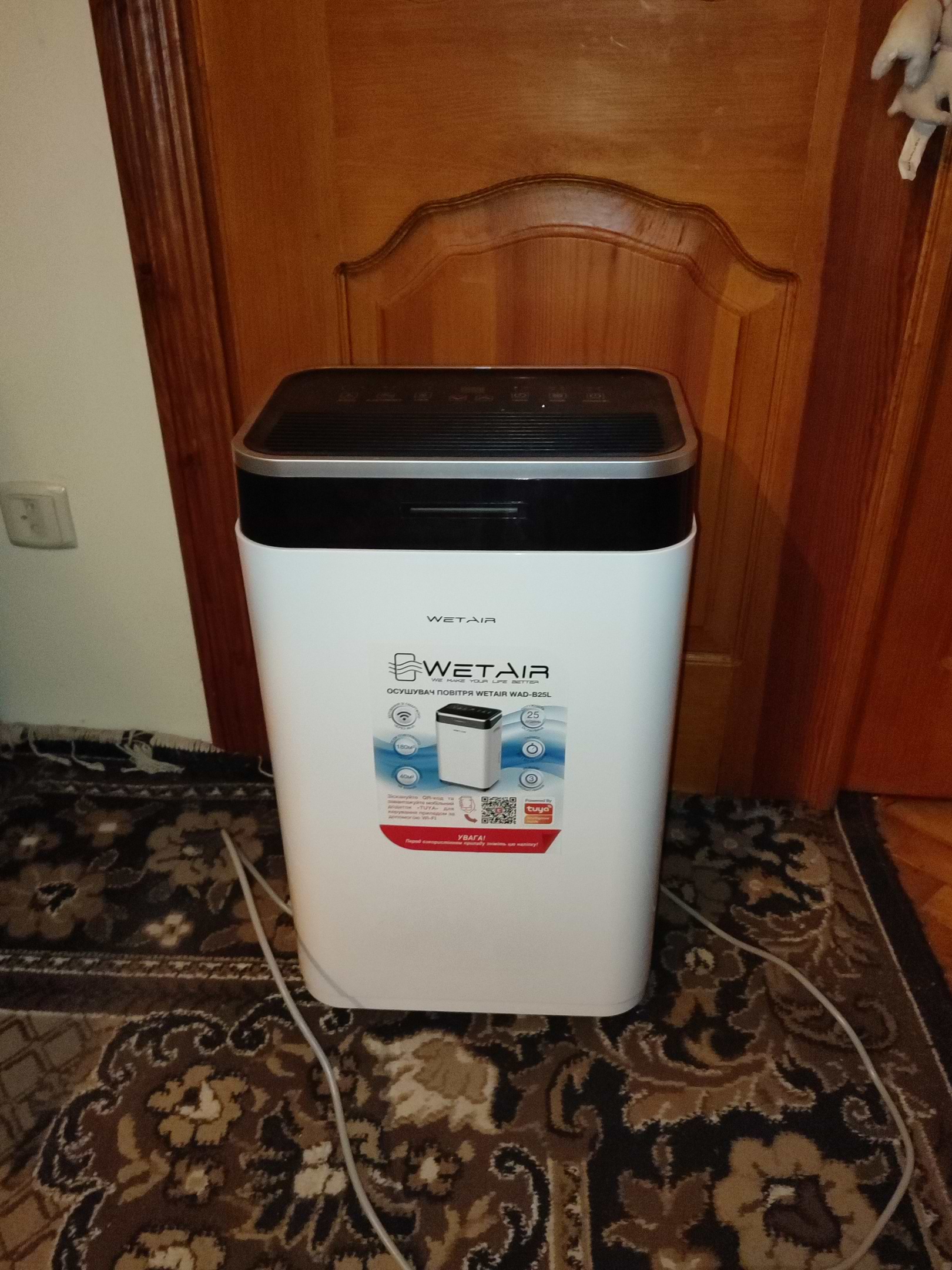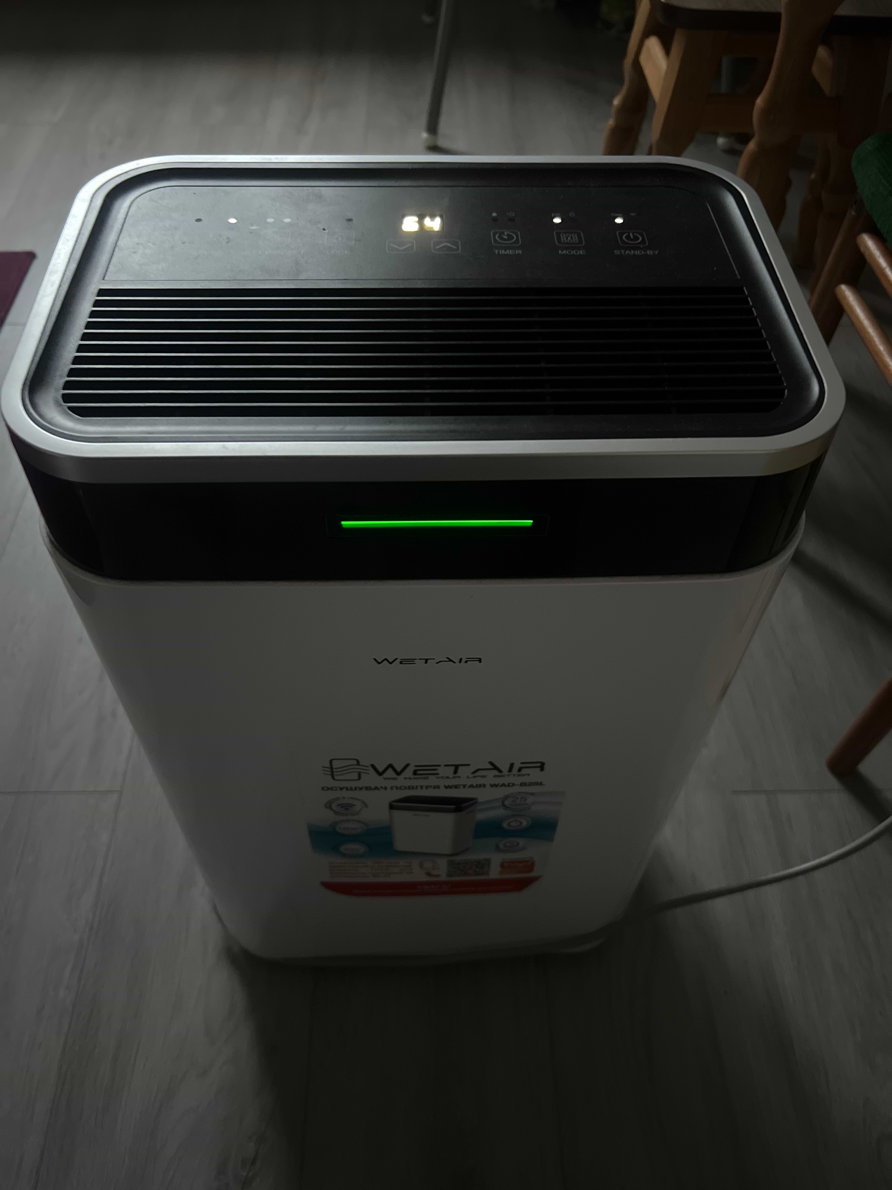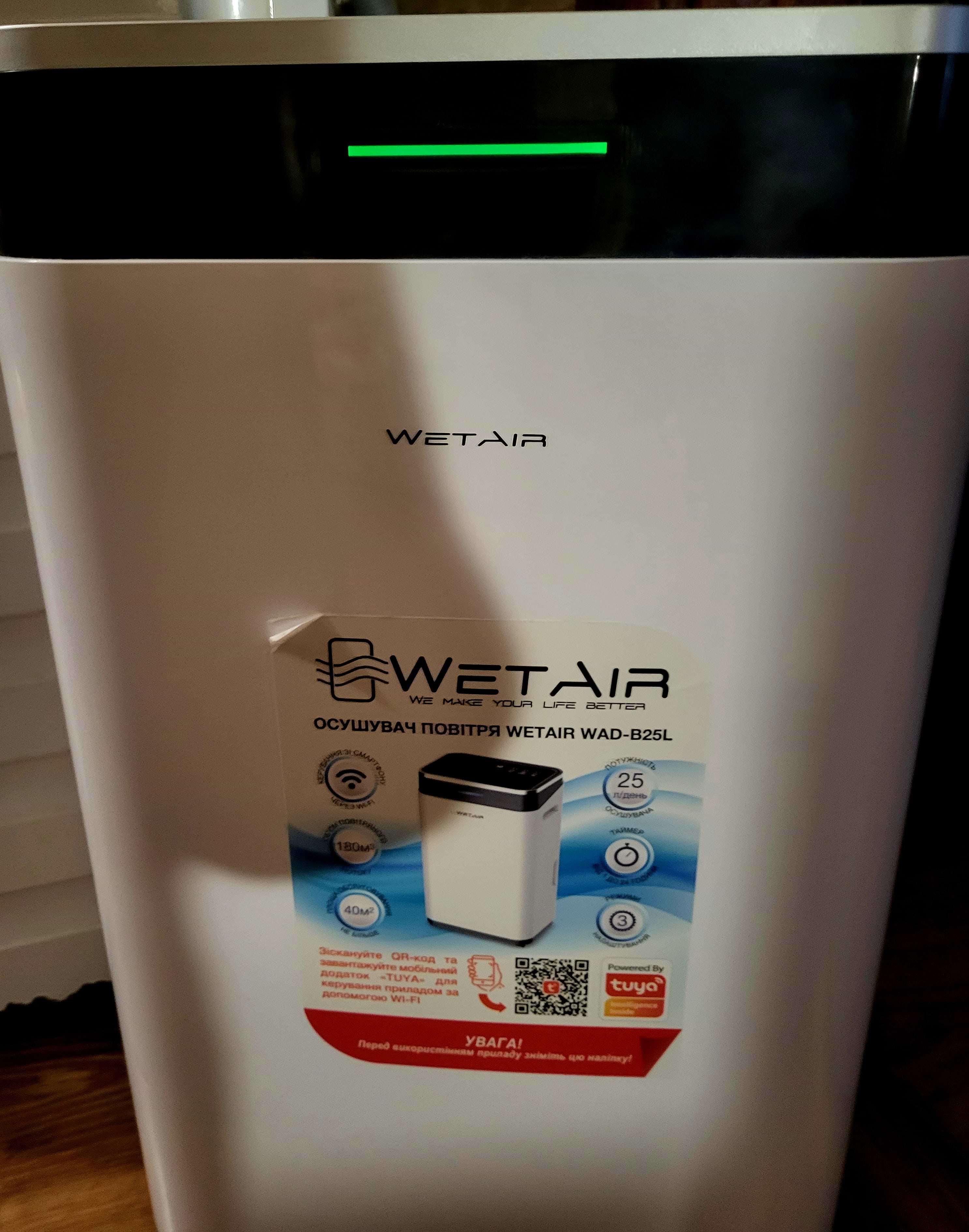 Я придбала у вас осушувач повітря WetAir WAD-B25L. У описі на сайті було вказано наявність функції Wi-Fi керування, але фактично в моєму пристрої Wi-Fi відсутній (на шильдику модель WAD-B25L, без Wi-Fi модуля). Індикатор підключення не загоряється, що підтверджує відсутність цієї функції.