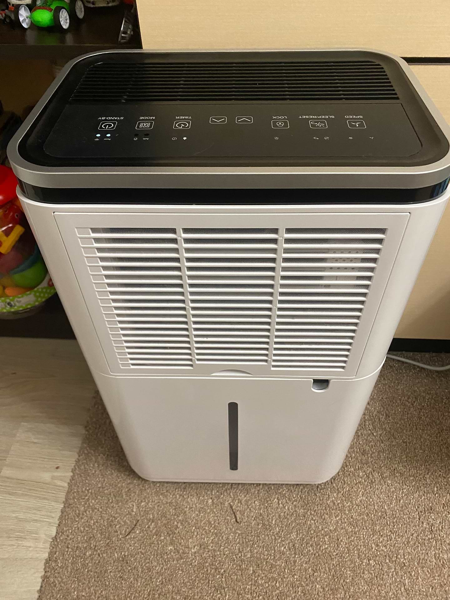 Дуже задоволенні! свою функцію виконує на 100%. Вмикаємо на ніч ( можна виставити таймер на включення і виключення) , за ніч з 23.00. до 6.00. набирає до 3 х літрів. волоність знизилась помітно, вікна не потіють. Можна керувати з телефону. По гучності як кондиціонер, спати не заважає.