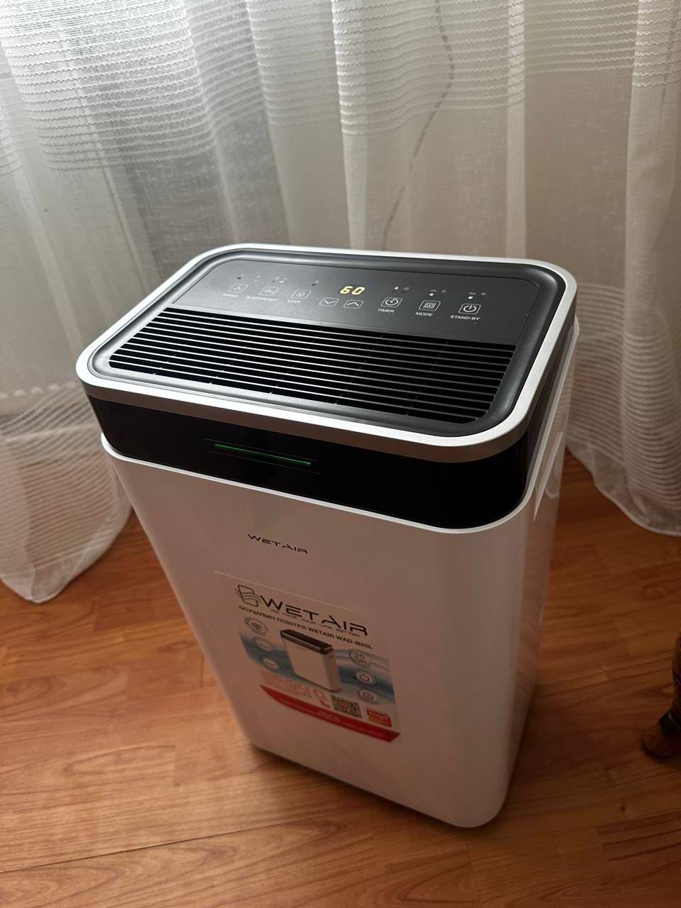 Дуже задоволені покупкою.Він дієвий 100%, вологіть зменшилася, щоправда на нашу площу доводиться переставляти почергово з кімнати в кімнату.
