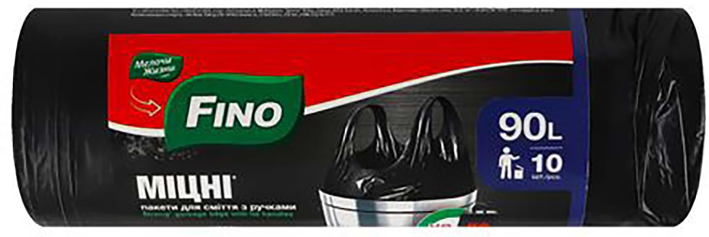 Пакет мусорный FINO с ручками, Прочные 90 л, 10 шт