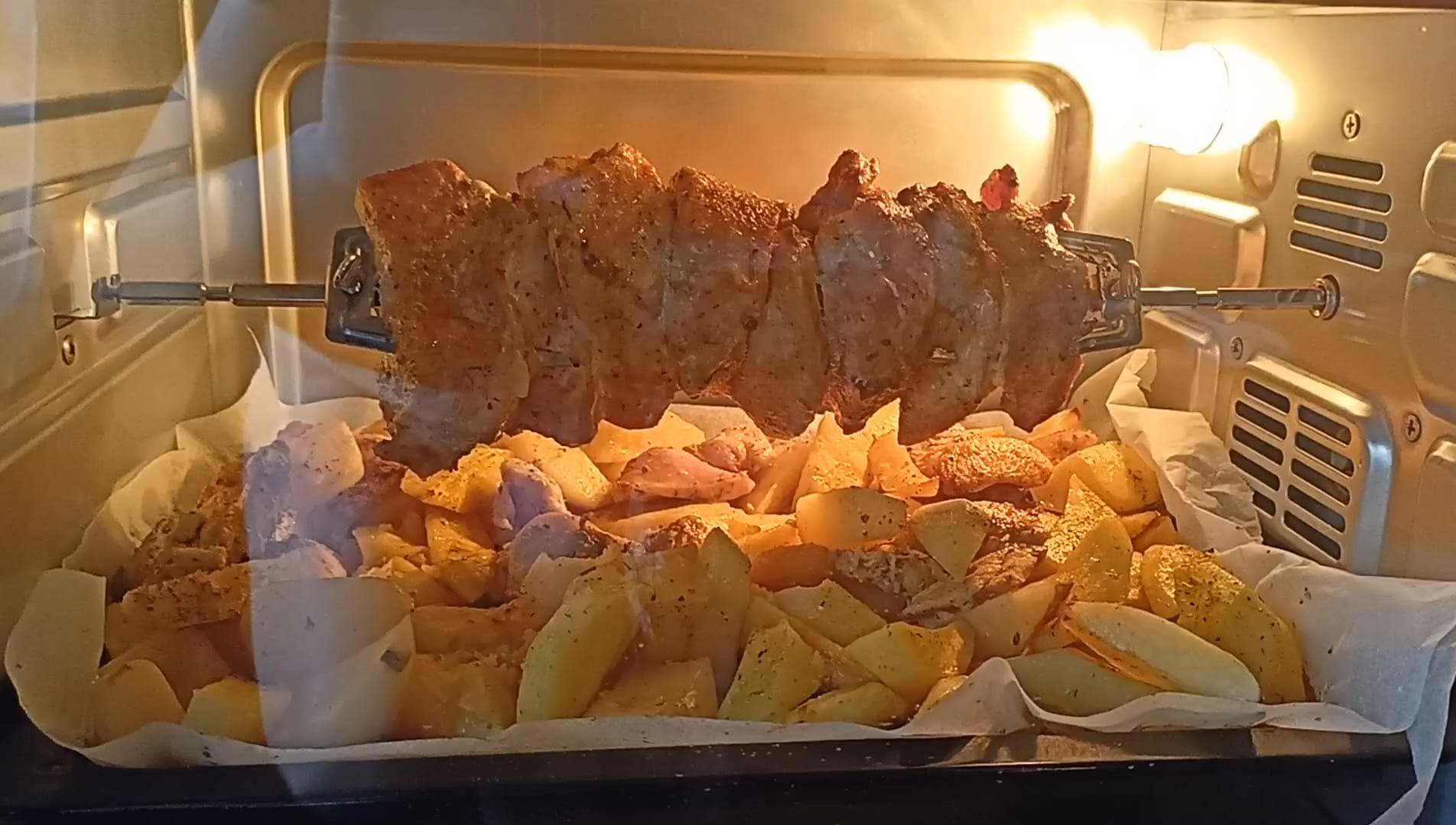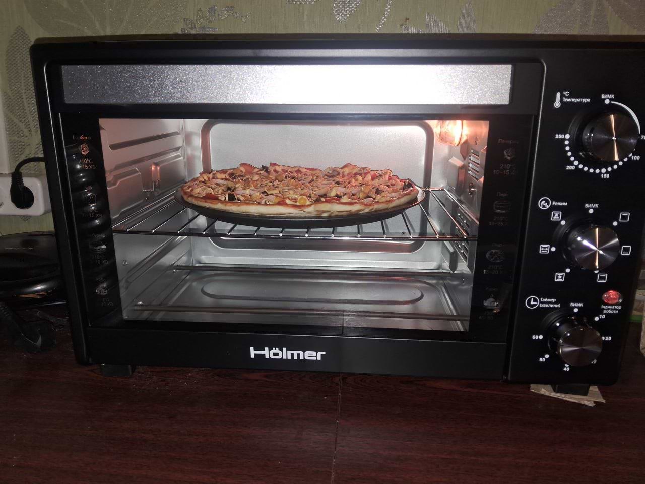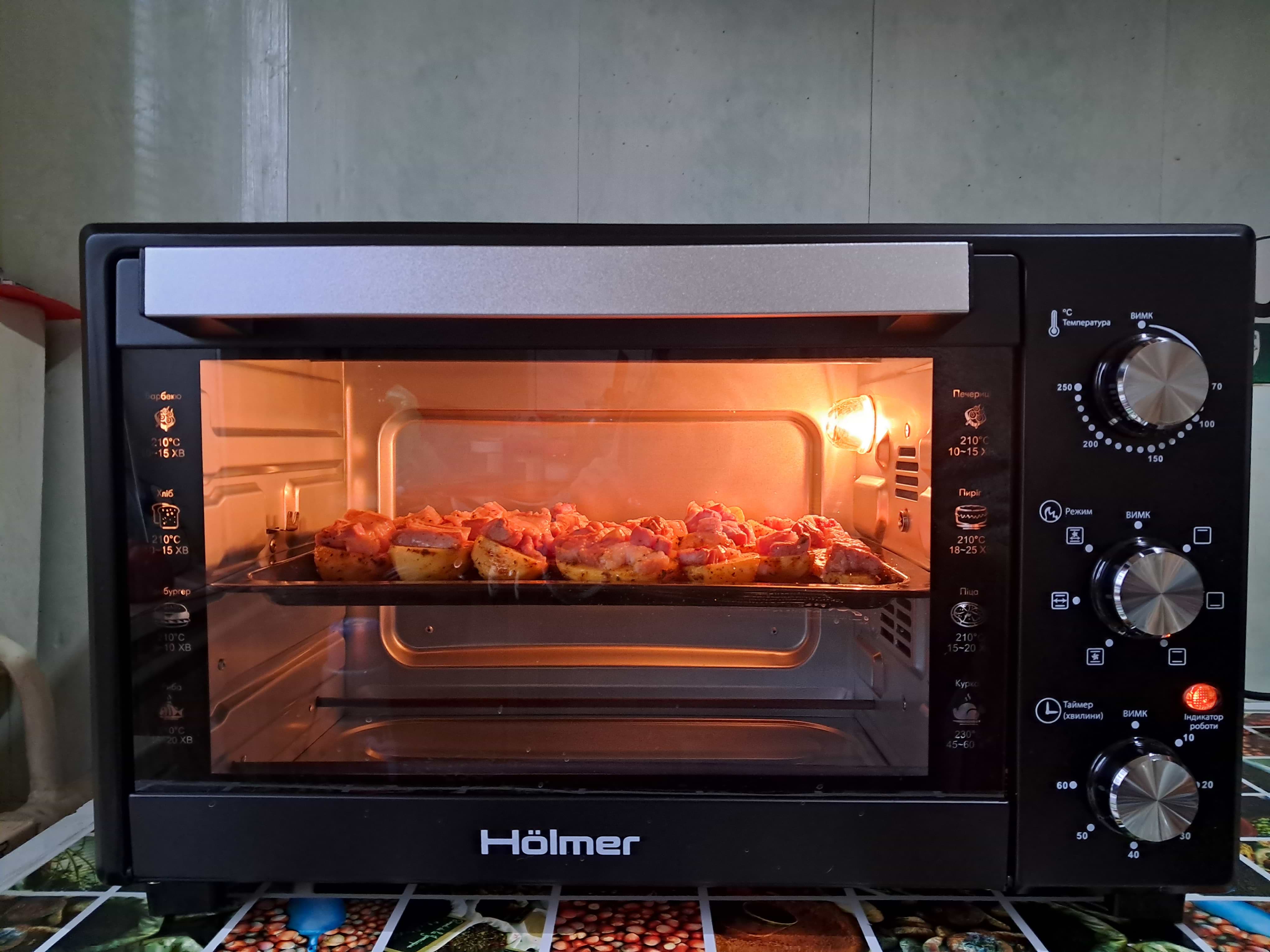 працює рік. за рік почала ржавіти в кожному куточку. пропікає довго(куряче мясо 1,5год) і не рівномірно(зпереду не допікає, а ззаду пригорає). режим конвекції засушує і готує ще довше