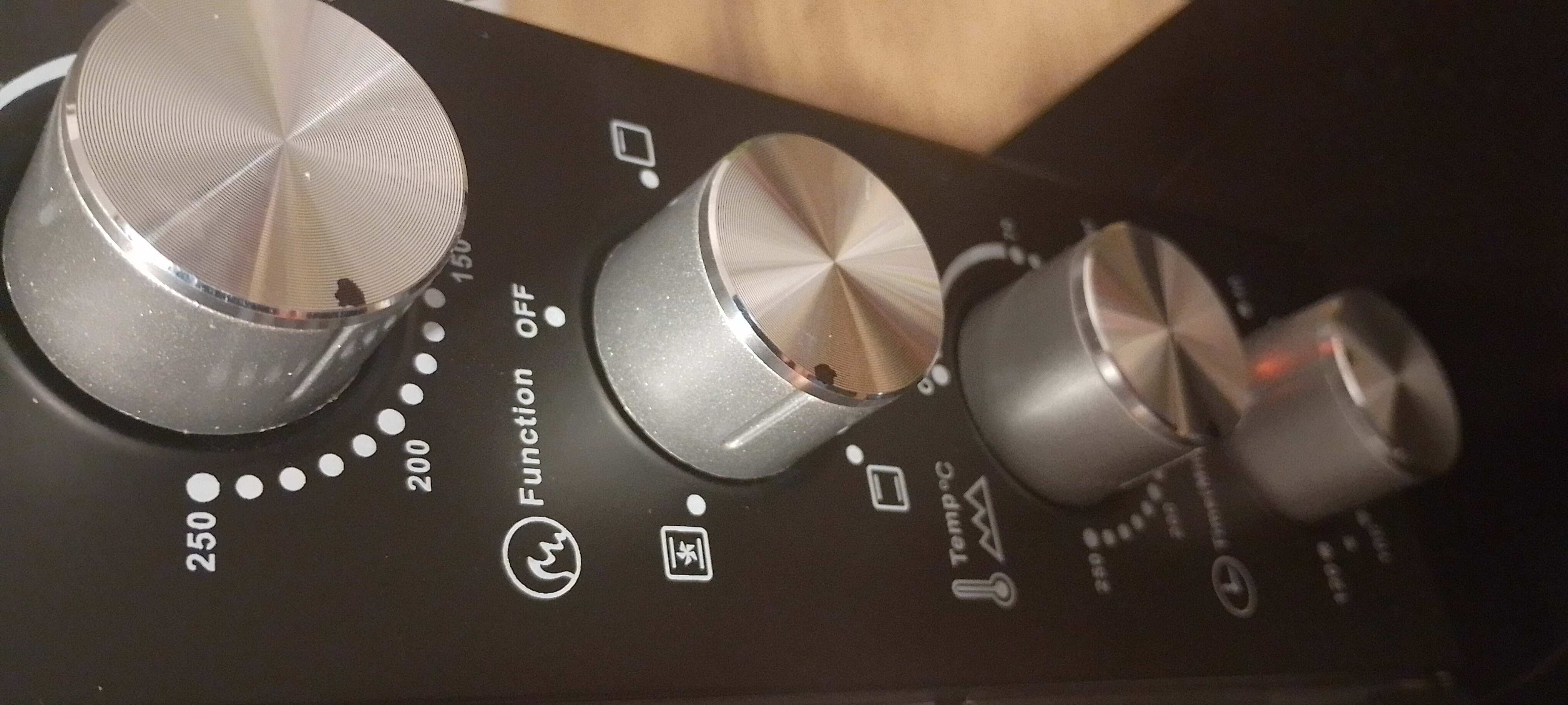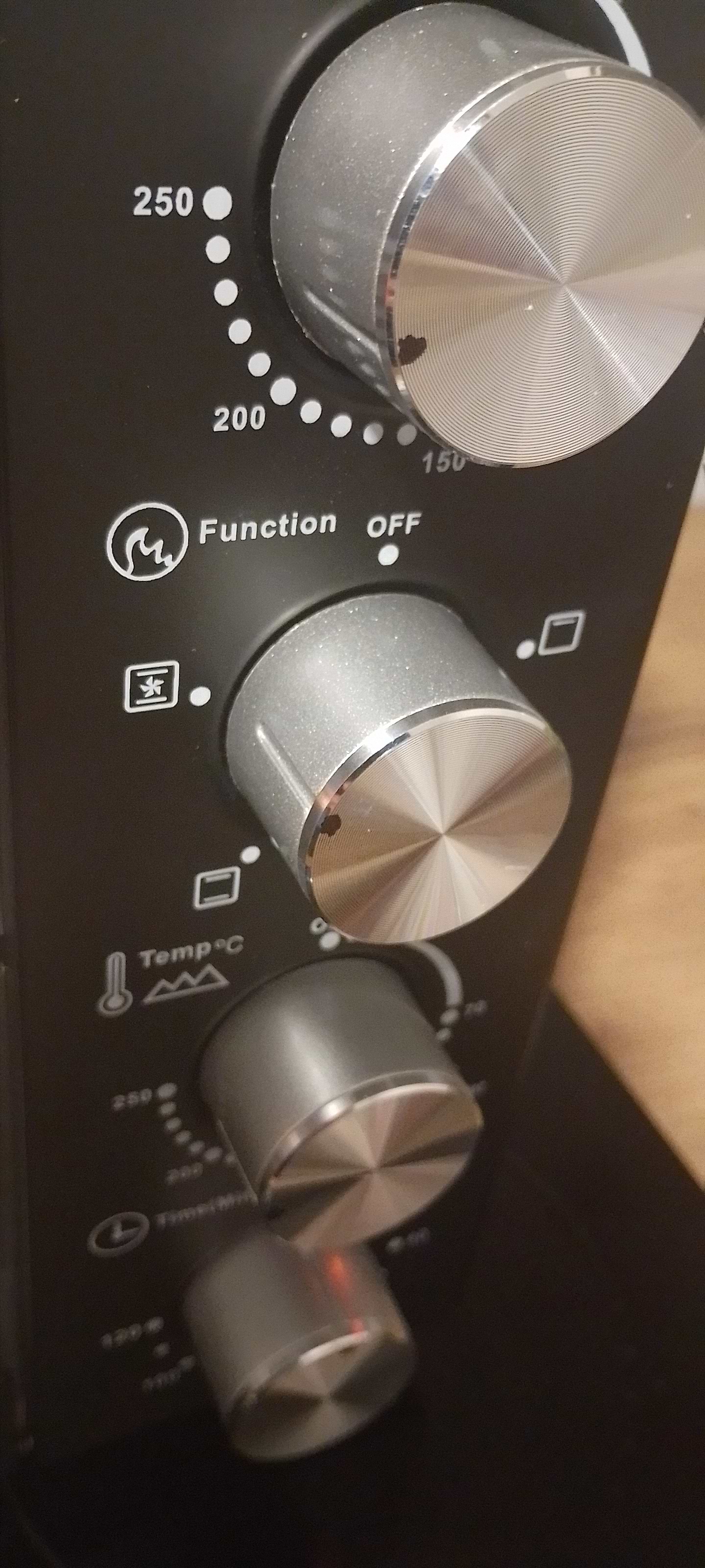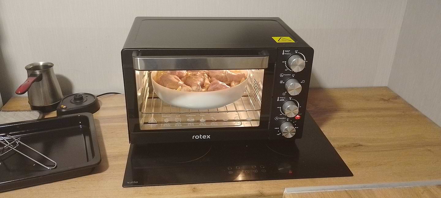 Одразу з магазину спробував запекти картоплю з курячими гомілками і вони вдалися на славу. піч працює як слід, особливо радує наявність конвекції, що покращує приготування страв. є пару нюансів, типу, розмітка з температурою на кожен нагрівач, вона не відповідає справжній температурі та погані мітки на ручках керування, потрібно крутити головою щоб визначити на який режим вказує регулятор, на фото видно, довелося перманентним маркером нанести мітки на ручках керування. взагалі, піч класна, всім раджу!!!