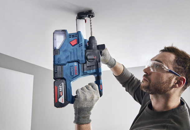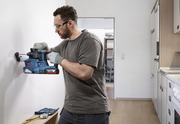 GBH 185-LI Professional – это новый уровень вашего труда. Благодаря бесщеточному двигателю Bosch на 18 V процесс сверления не потребует от вас больших усилий, а с аккумулятором вы сможете работать даже при отсутствии электроэнергии. С функцией KickBack Control вы будете застрахованы от случайного заклинивания, а Vibration Control снижает уровень вибрации. Также можно подсоединить пылеуловитель Auto Power GDE 12 – это поможет вам сохранить рабочее место в чистоте.
