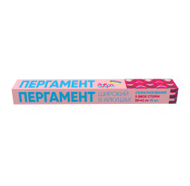 Цей пергамент має силіконізоване покриття з двох сторін. Призначений для приготування та пакування продуктів. Пергамент порізаний на листи розміром 42 х 38 см, це ідеальний розмір, щоб одним листом закрити стандартний лист, тобто не потрібно відміряти та розрізати папір. Пергамент упакований у коробку зі спеціальною кришечкою. Діставати листи легко і зручно.