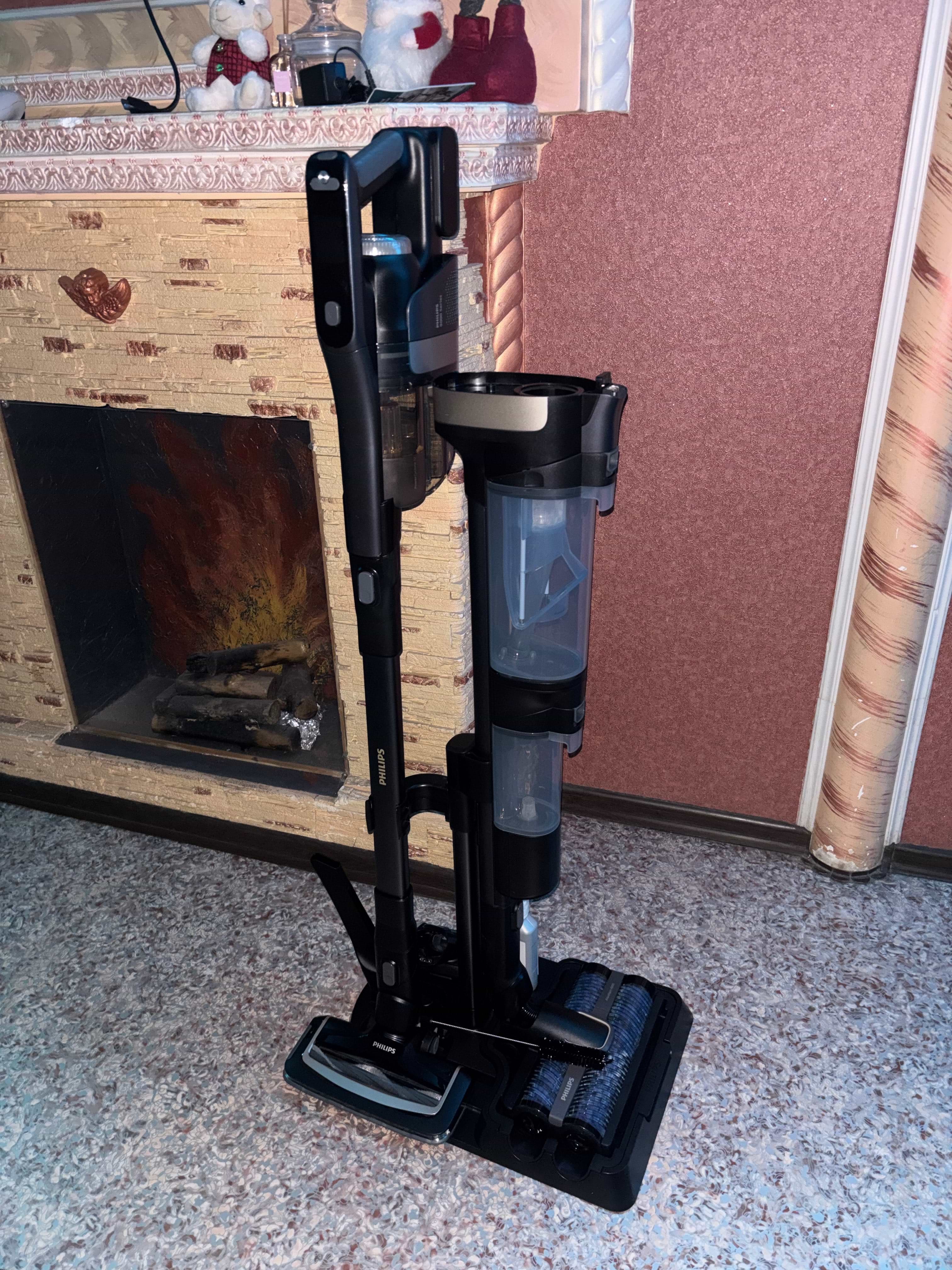 Класний пилосос, бажаю його придбати кожному, так як насправді його ціна повністю його виправдовує. Для мене стало перевагою що всі турбощітки розбірні, також два валика в мийці, краще промивають підлогу, аніж один або мопи(насадка з круглами тряпками). Приємно була здивована, що навіть на мінімальній потужності пилосос класно прибрав килим без високо ворсу. На мою квадратуру(35м2) мені вистачило двічі прибрати сухим та мокрим і двічі зробити самоочистку.