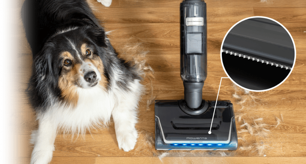Мощное всасывание и специальная расческа в щетке предотвращают намотку шерсти и волос на валик, оставляя его чистым, без необходимости дополнительного ухода.