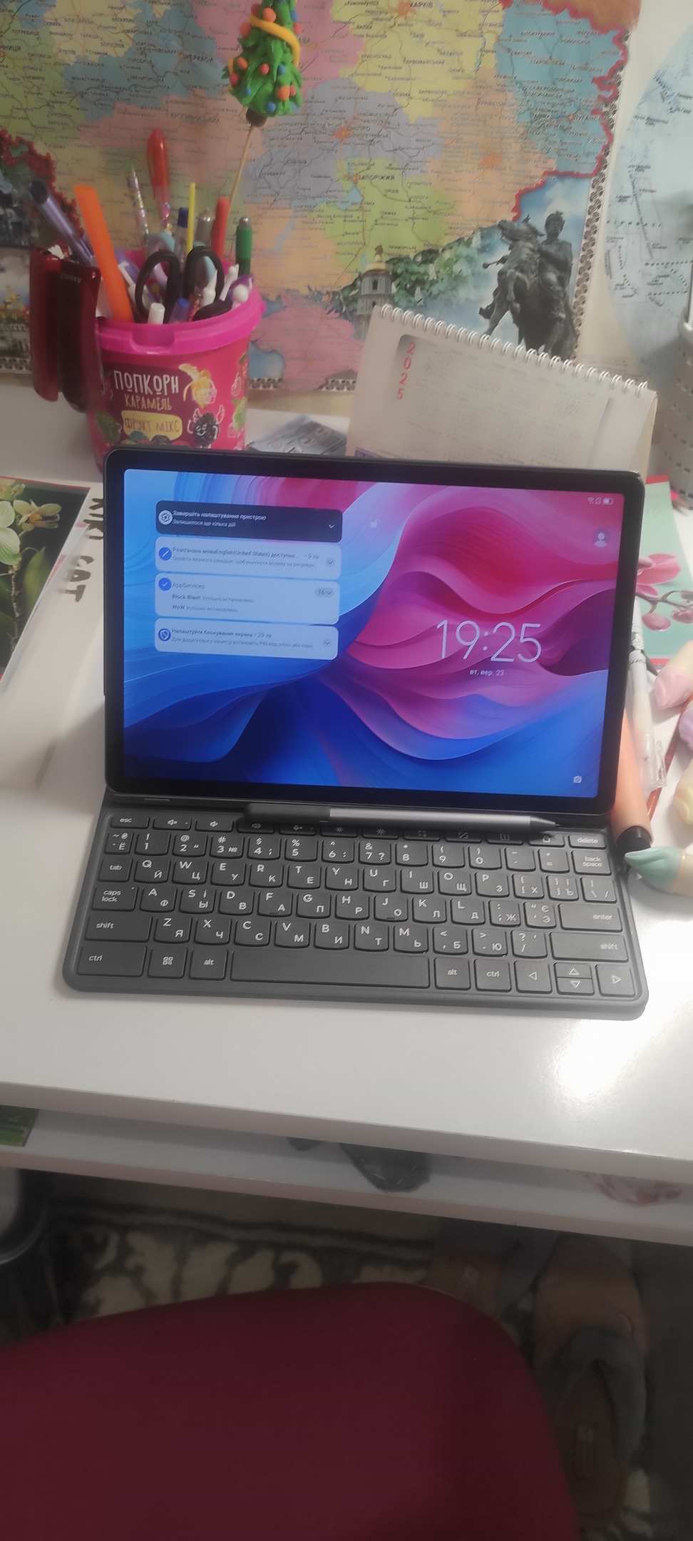 Чудова модель, виглядає сучасно та мінімалістично, екран, звук та автономність на хорошому рівні для цього бюджету, приємним бонусом є наявність стилусу та чохлу-клавіатури