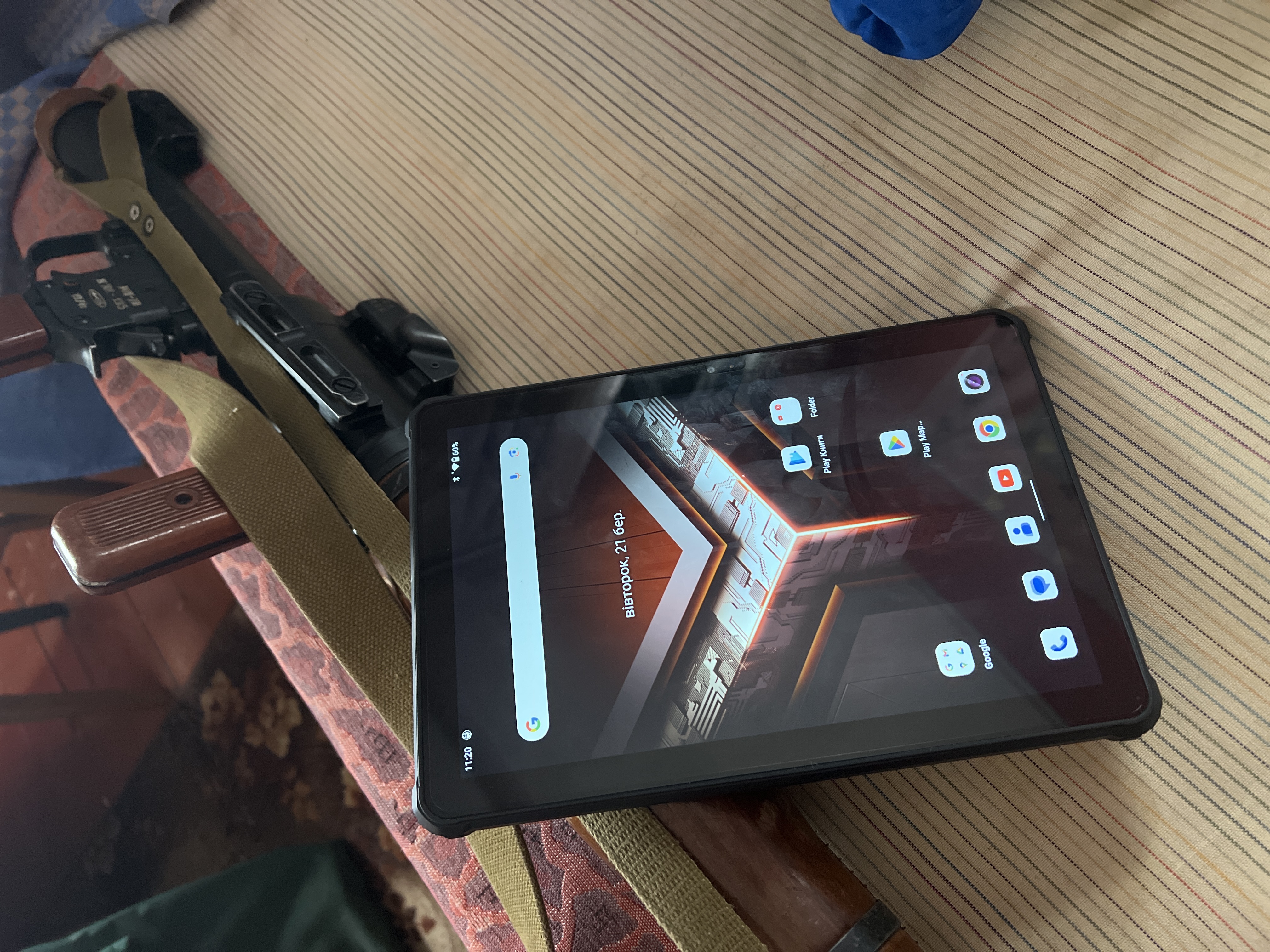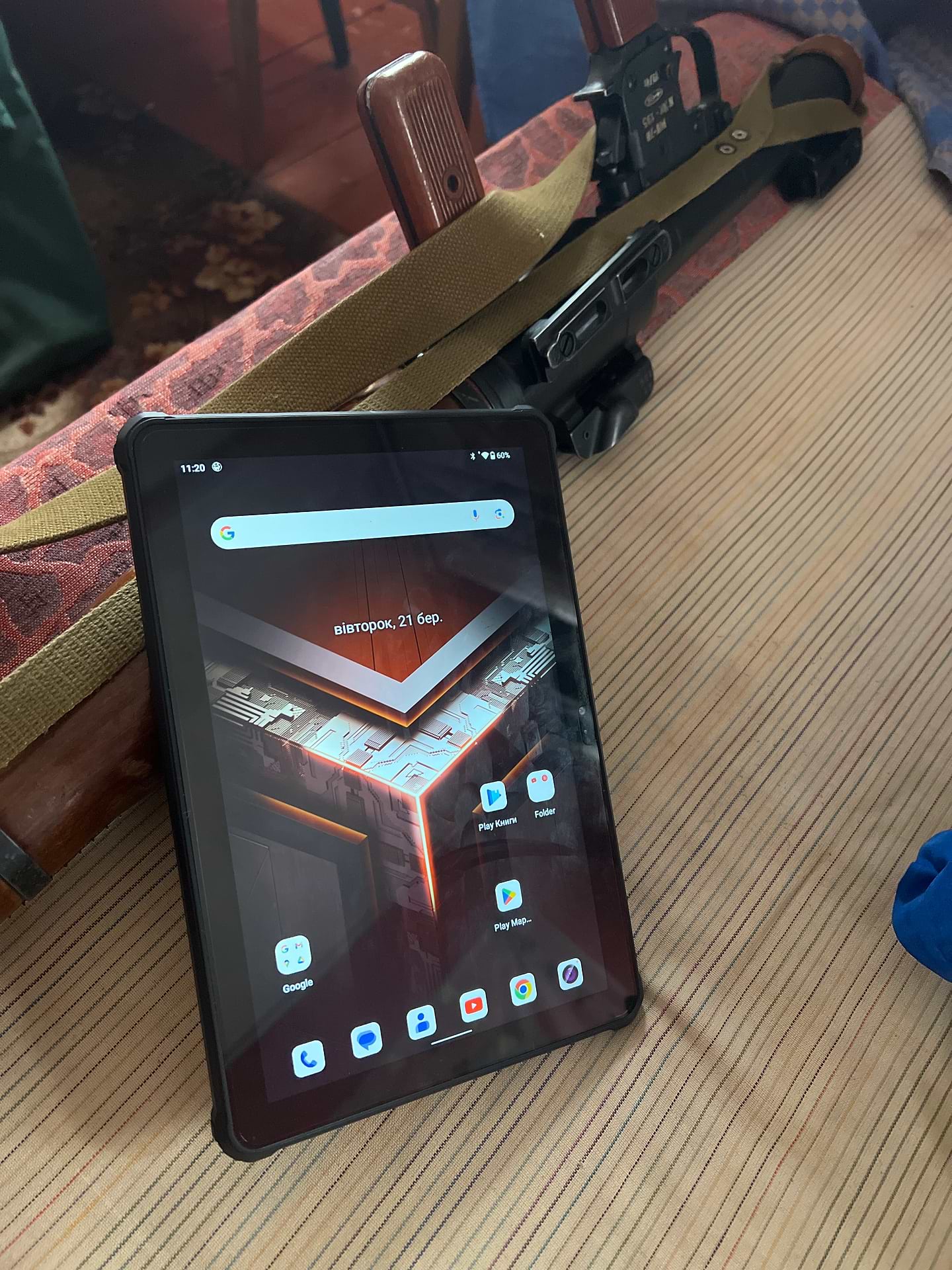 Все добре, тільки сам андроїд не зручний, вставив флешку, просить форматувати, а як додати інформацію планшет. А так, в принципі, нормальний. Батарея при активному використанні тримає майже 3 дні. Тільки важкий. Для армейшини саме то, а для бітових питань я б особисто щось інше подивився б. Про чохол і не мрійте, нормально не сідає, але і не дуже потрібен.