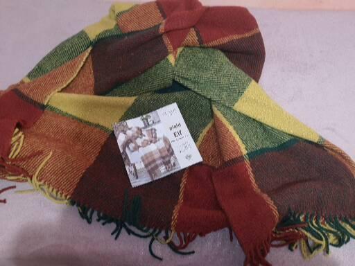 Мені сподобався плед, взяла різнокольоровий великий 200 см на 240 см. На зиму гарний варіант. Не колючий. 70 % шерсті. Також приємний запах у нього. В акції ціна гарна на ньго.