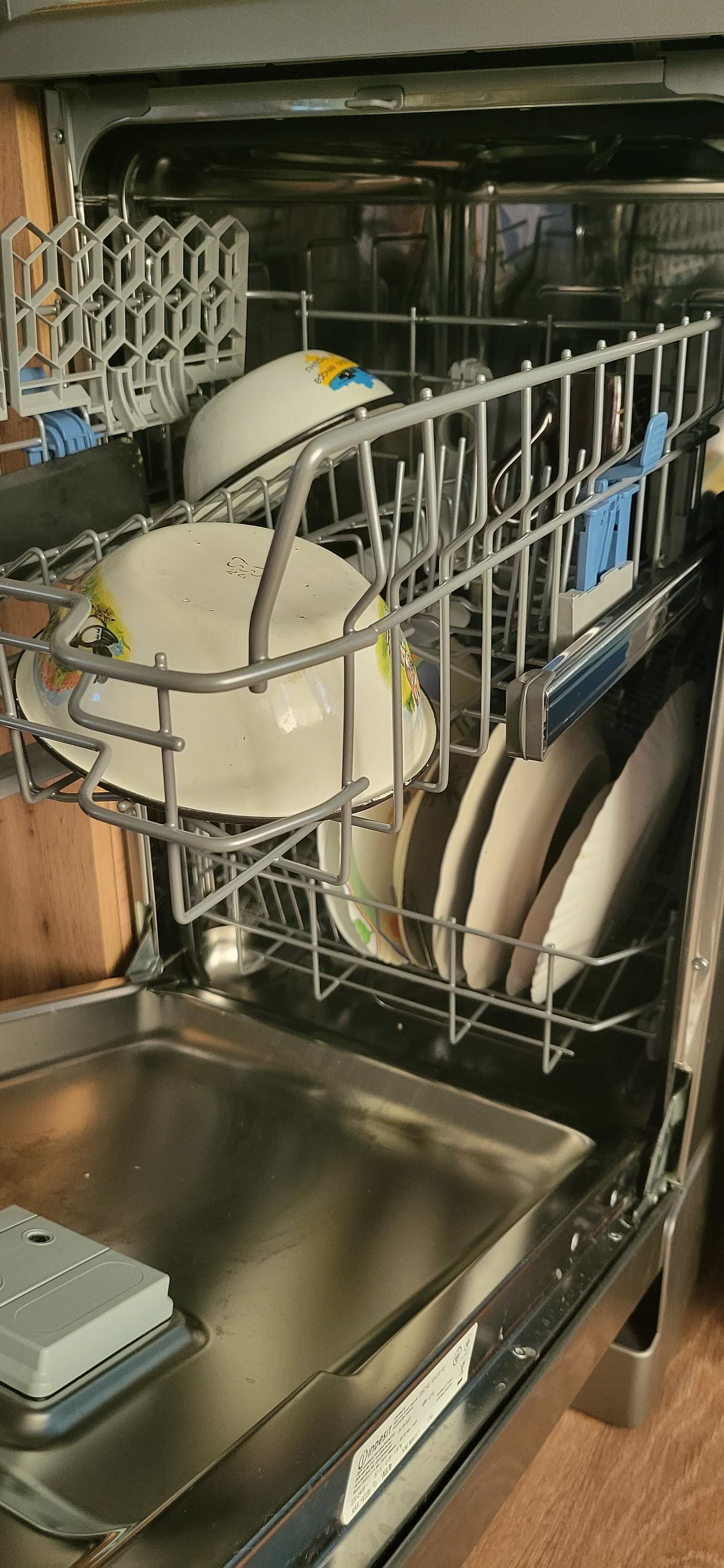 Взяли бюджетну посудомийку на заміну старенької Bosch, перші враження це якість збірки, тут звичайно Indesit програє, позаду машинки пінопластові вставки як елемент конструкції. Це лякало) але після першого ж миття, все стало добре. Посуд відмиває дуже добре, і виграє у старенької Bosch! Використовуємо засоби Finish. Посудомийку радимо, дуже гарний варіант!