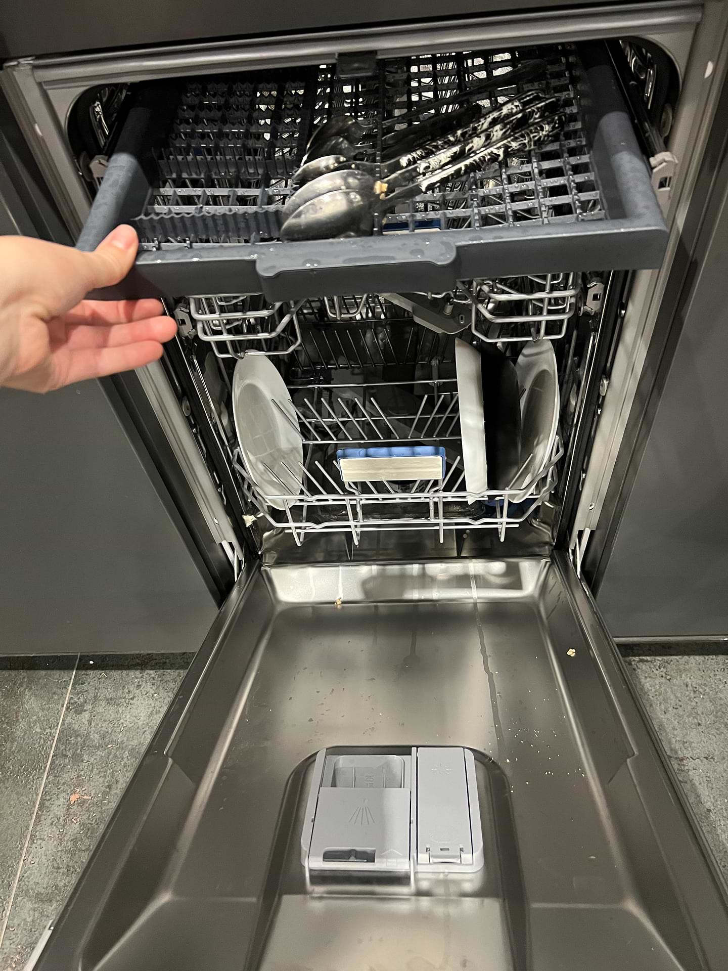 Маю досвід використання посудомийки з кошиком для приборів. Поки не відчуваю різниці використання окремого відсіку. Програми для миття мають велику тривалість, майже 3 години. Є можливість ставити відкладене миття, це супер.