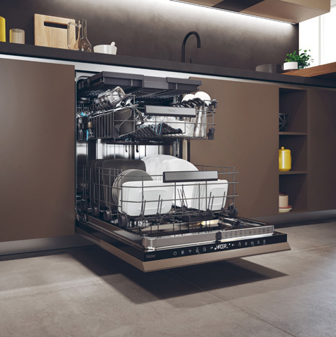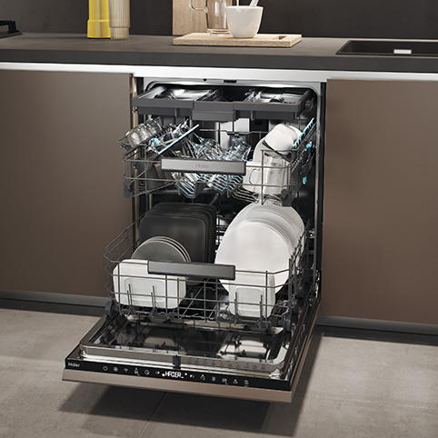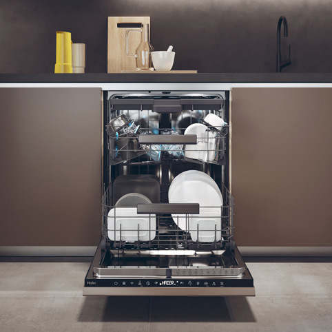 16 комплектов посуды для мойки в посудомоечной машине шириной 60 см! Благодаря увеличенной емкости посудомоечной машины вы получите и большую эффективность от ее наличия. Ведь теперь вся посуда, которую вы использовали для приготовления и которой сервировали праздничный стол, помещается в посудомоечную машину без лишних усилий. В посудомоечной машине Haier XI 6BOS3FSB есть место для всего, а для столовых приборов существует отдельная полка.
