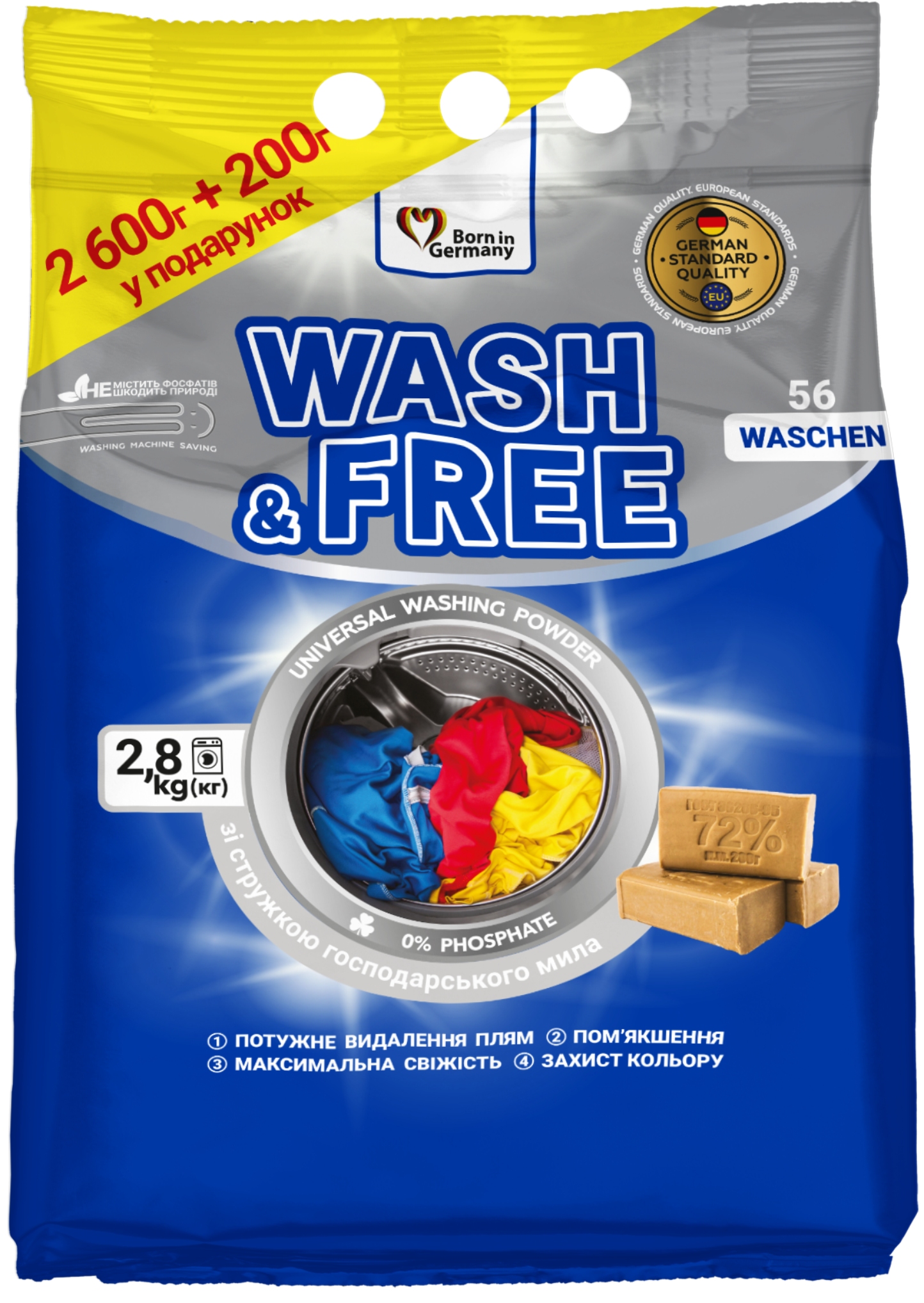 Стиральный порошок WASH & FREE универсальний 2600 г + 200 г