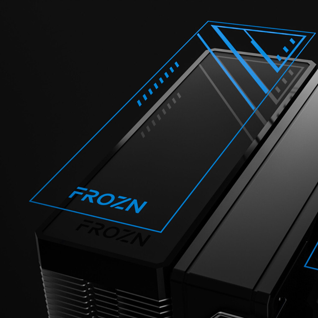 Сочетание поверхности цвета натурального алюминия, пластиковой крышки и матовой наклейки с надписью «FROZN» создают незаметный, на первый взгляд внешний вид и обеспечивают идеальную интеграцию FROZN A620 PRO SE в любой корпус.