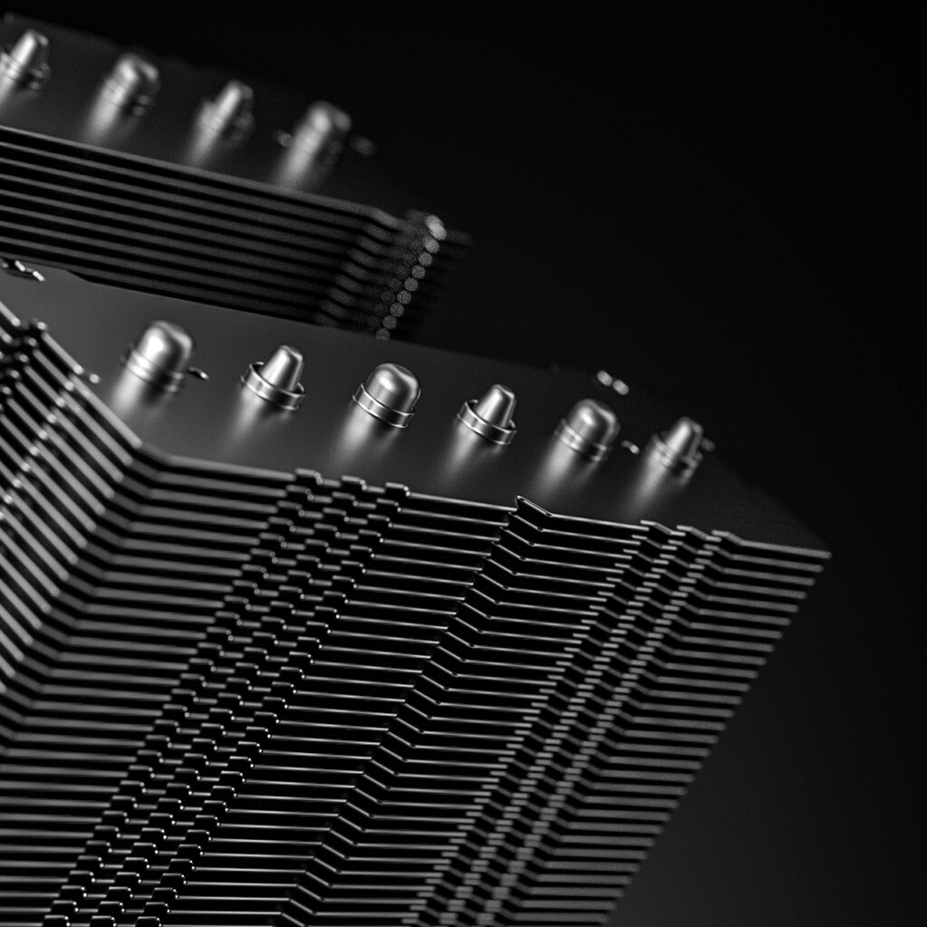 Шесть усовершенствованных 6-миллиметровых тепловых трубок с максимальной теплопроводностью транспортируют тепло к оптимальным местам на охлаждающих ребрах. Ребра присоединении к тепловым трубкам с помощью совершенной технологии проникновения ребер, что обеспечивает наилучшую эффективность охлаждения и минимизирует тепловое сопротивление.