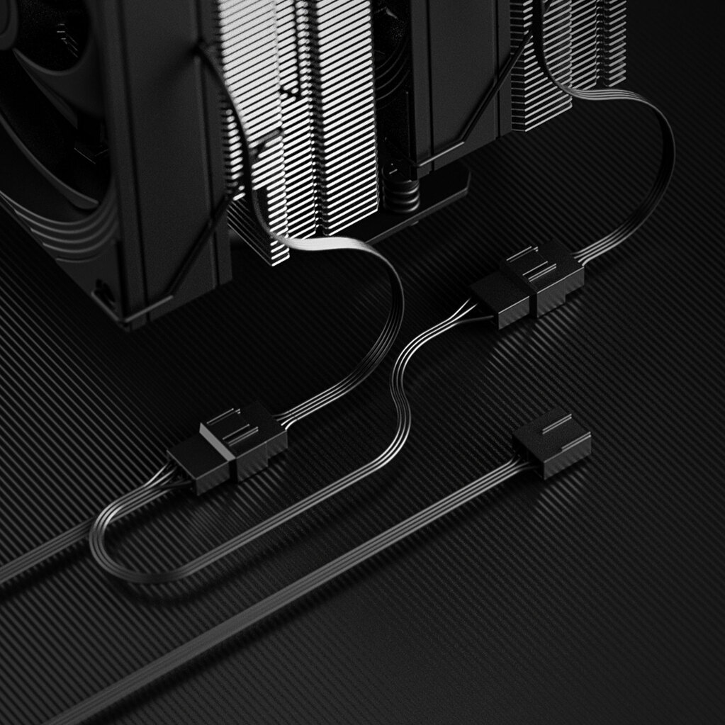 120-миллиметровый вентилятор вместе с кабелем-разветвителем с двумя отдельными разъемами обеспечивает ШИМ для удобного автоматического управления скоростью вращения через материнскую плату. Также можно снизить максимальные обороты вентилятора, используя специальный малошумный адаптер, входящий в комплект поставки, для еще более тихой работы.