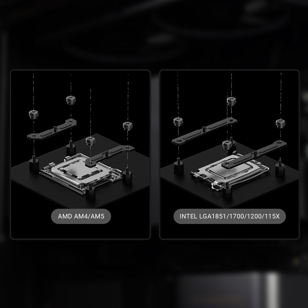 Благодаря продуманным функциям монтажного комплекта X24-B, концепция монтажа является простой и элегантной. Преимущественно черный монтажный комплект с крепежными винтами идеально сочетается с дизайном кулера.